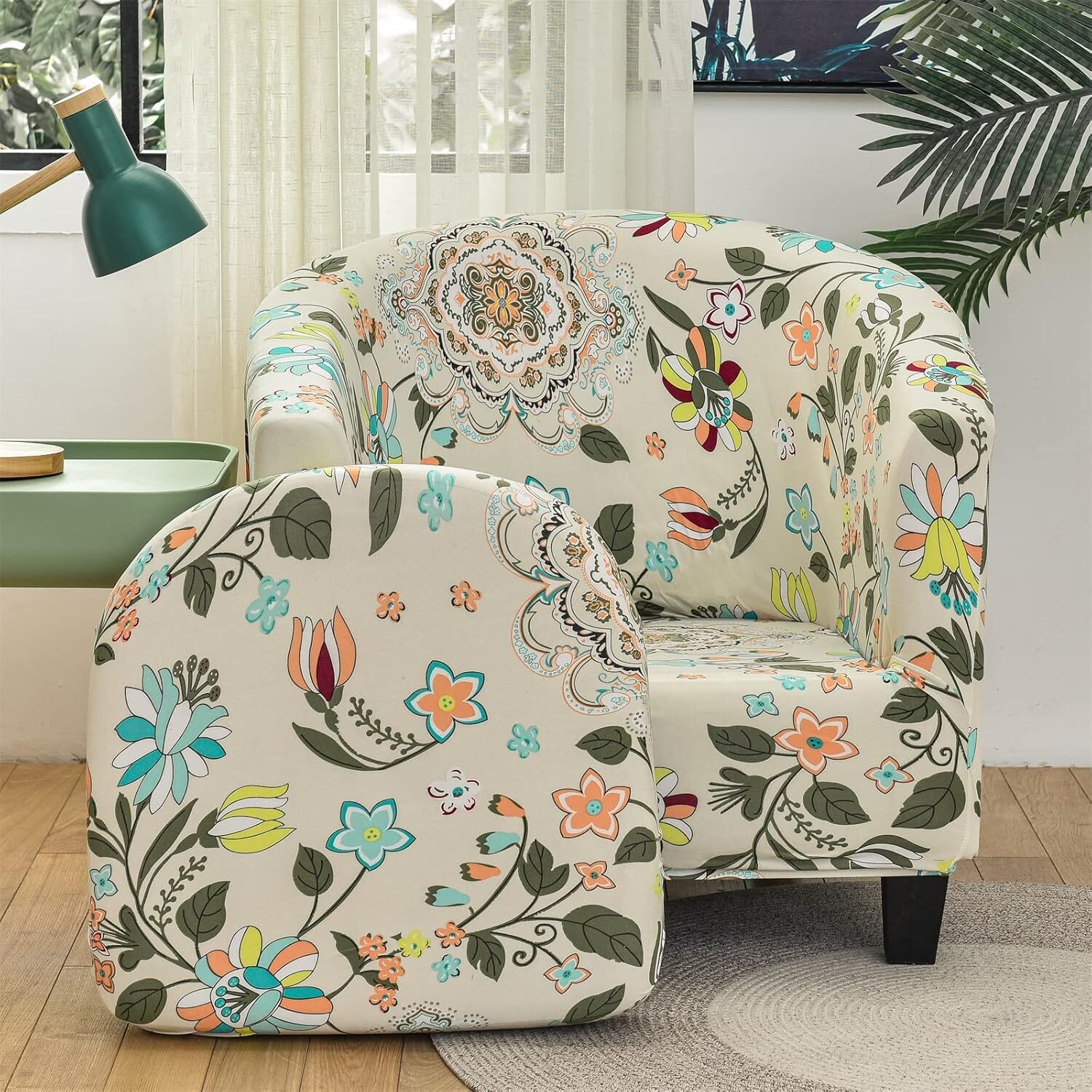 ✅Premium Club Chair Slipcover: Club chair covers are made of high quality 92% Polyester and 8% spandex fabric which is new upgraded, featuring two-way high elasticity, soft and comfortable, wrinkle resistant and durable, practical for your home decor. Various printed color arm chair covers for your choices as they update furniture to fit your evolving style.