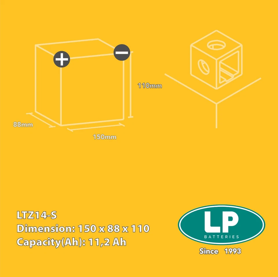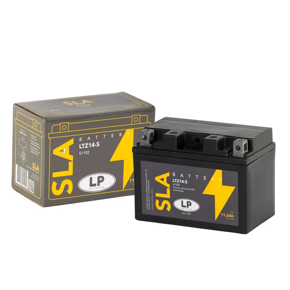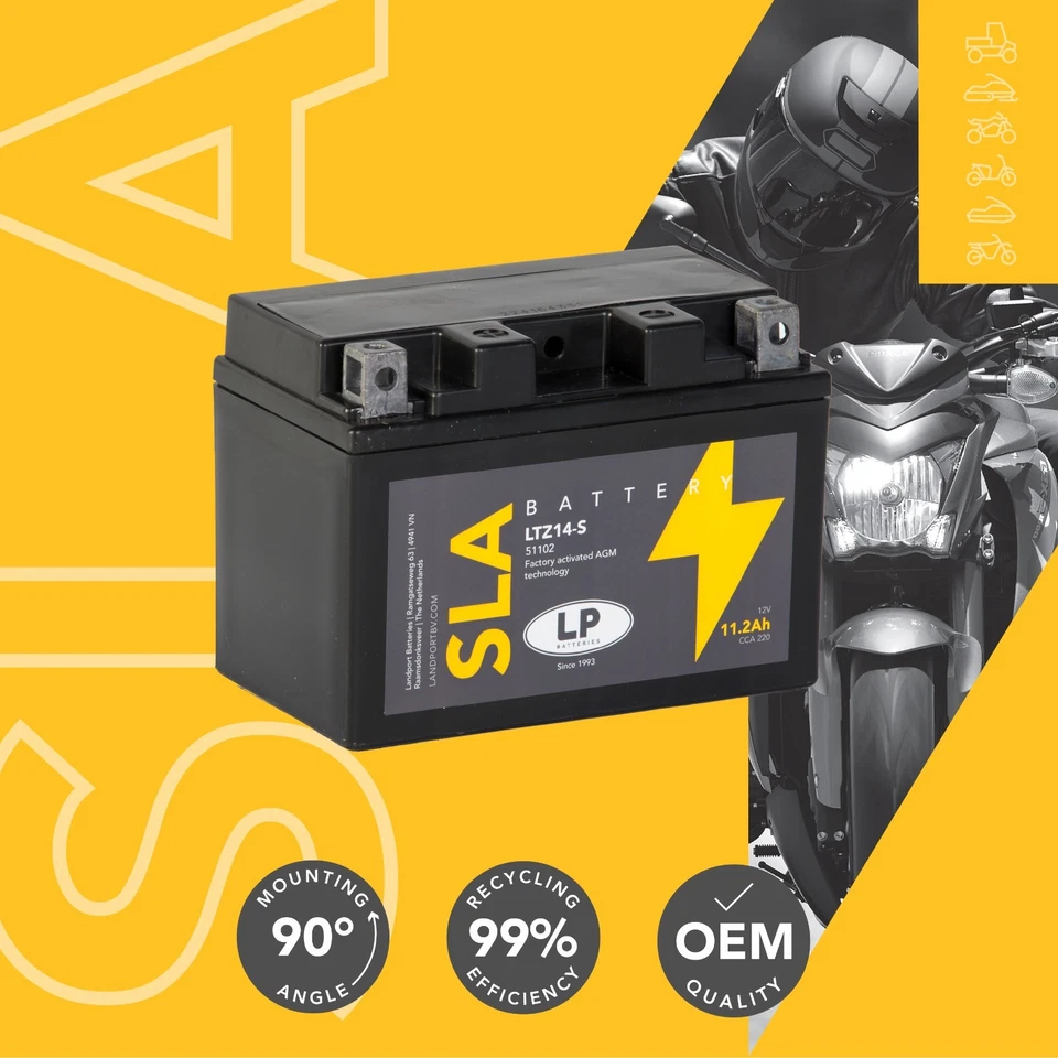 The motor battery LTZ14-S, 12 volt, 11,2 Ah, is a starter battery with AGM technology. The LTZ14-S is already factory activated (filled and charged) and therefore ready to use at delivery. This lead-acid battery is leak-proof and maintenance free. Can be installed in tilted position up to 90°. The LTZ14-S is a real allrounder and suitable for seasonal use and short distances.