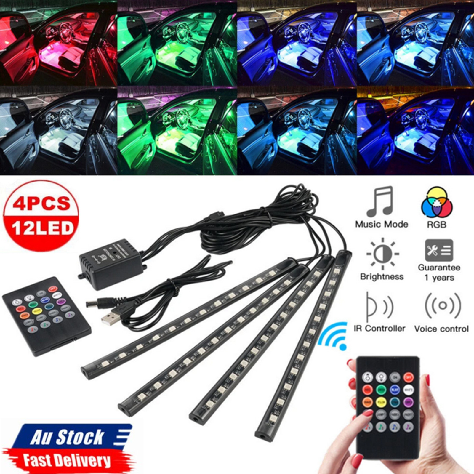 Wireless music control 8 color RGB car interior lights kit.
