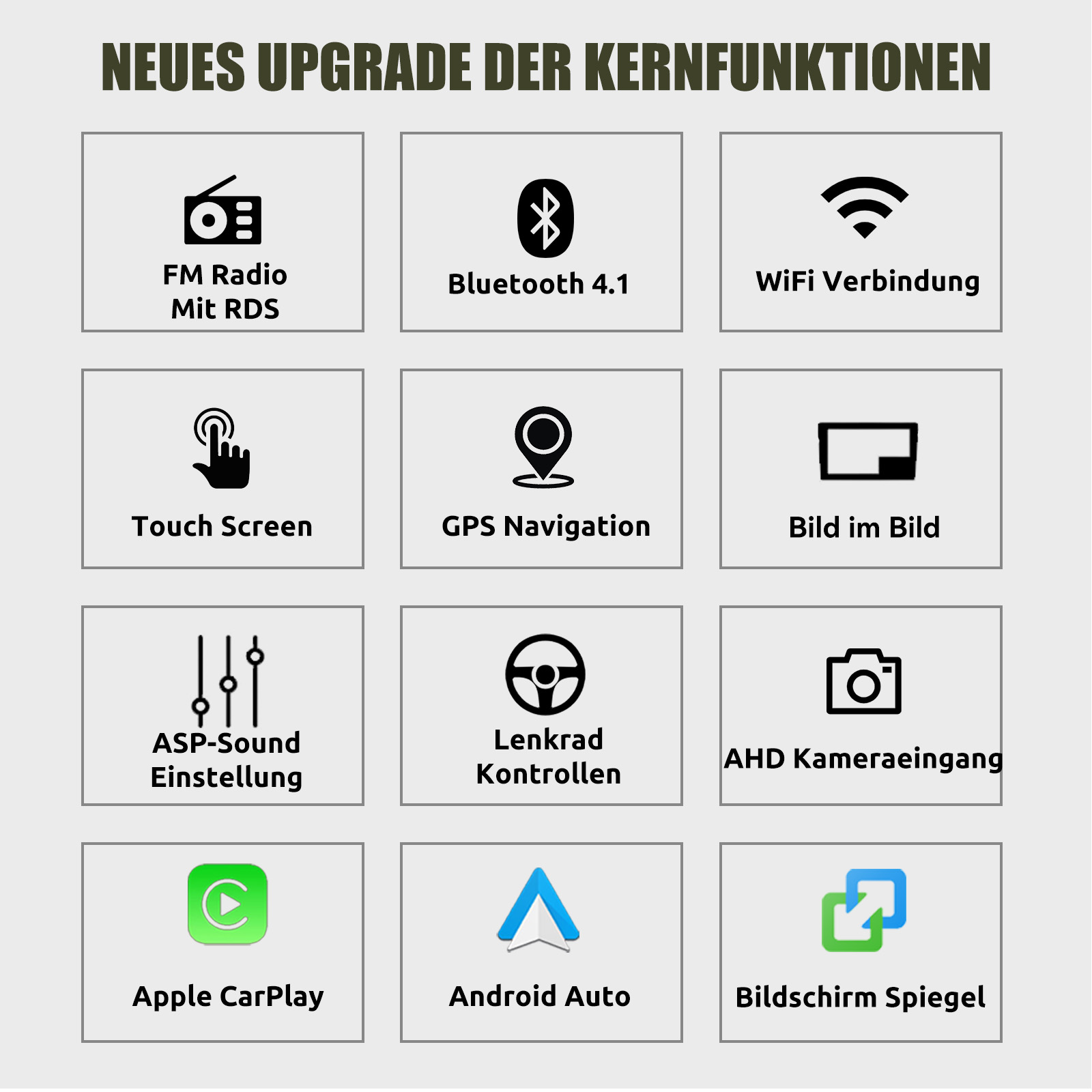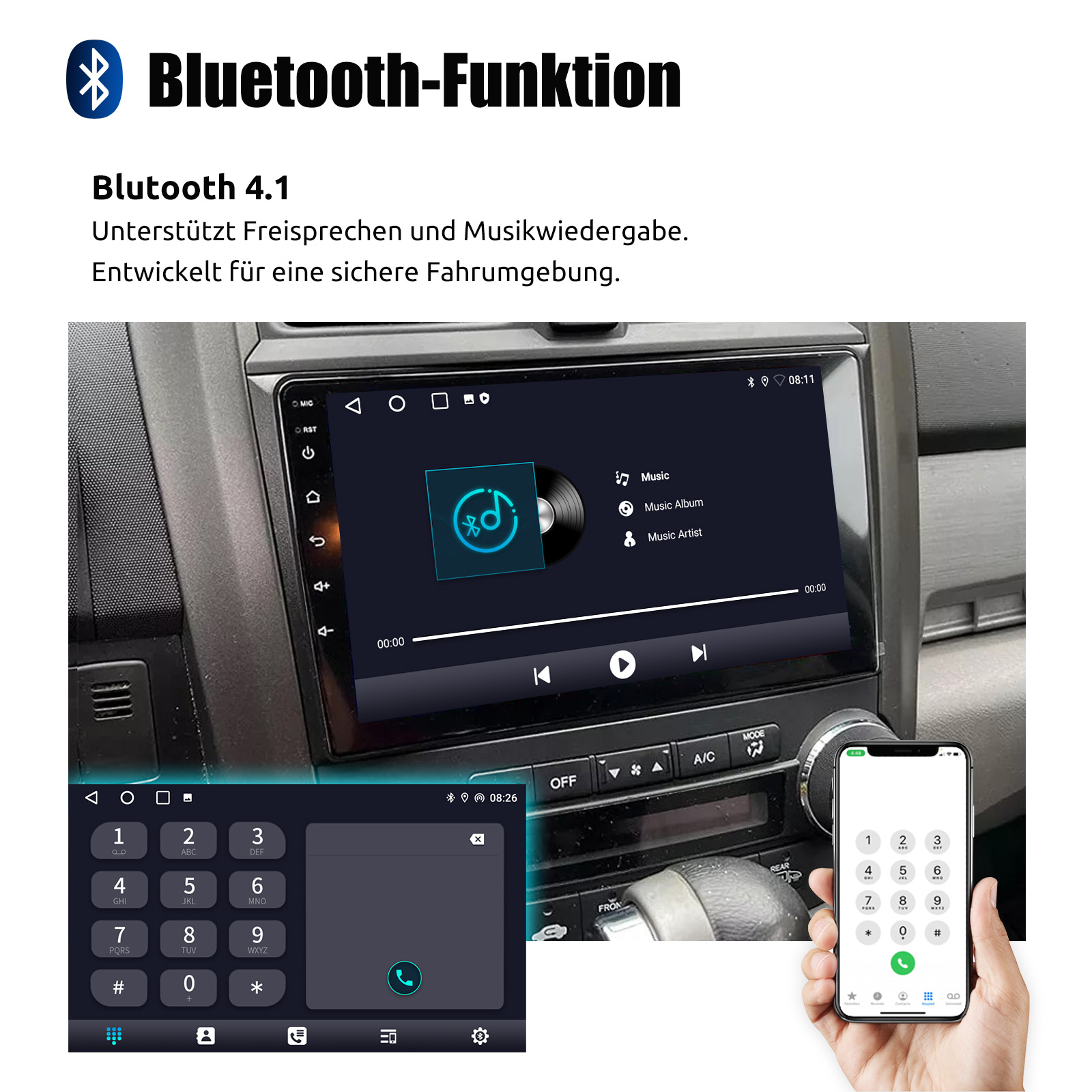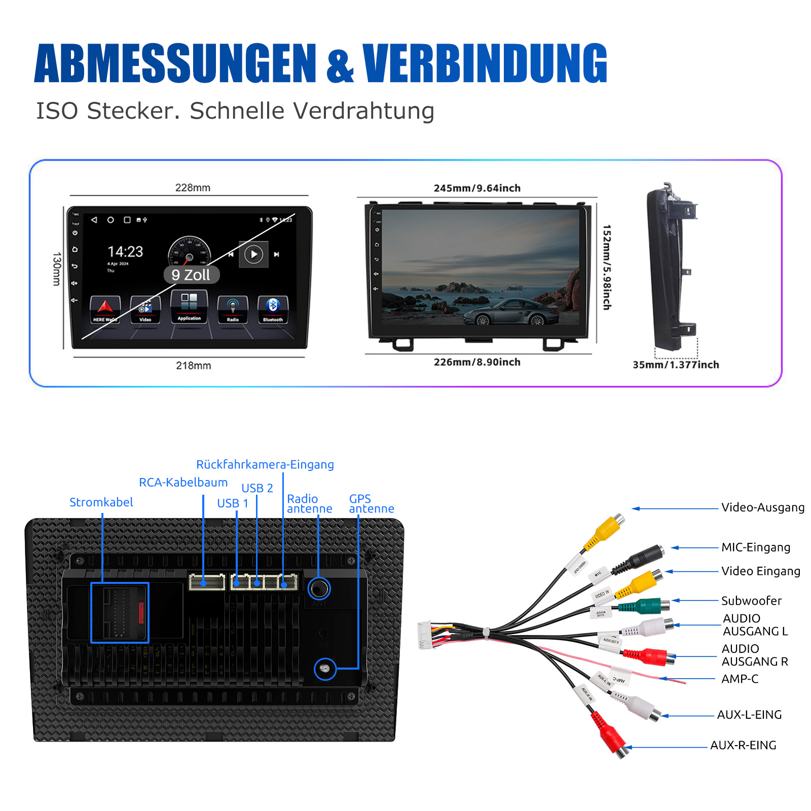 RDS/FM-Radio und Bluetooth und ASP Sound: Unterstützt Bluetooth 4.1, mit integriertem Mikrofon, damit Sie während der Fahrt freihändig telefonieren können. Unterstützt den Zugriff auf das Telefonbuch, die Musikwiedergabeschnittstelle usw. RDS unterstützt. Sie können 18 FM Radiosender speichern. Eingebauter ASP-Chip. Unterstützt 32-Band-EQ-Einstellung, die nach Ihren persönlichen Vorlieben eingestellt werden kann.Der Ihrem Originalsound sehr ähnlich ist.4 x 45W Verstärker, Surround-Sound und Subwoofer-Ausgang.