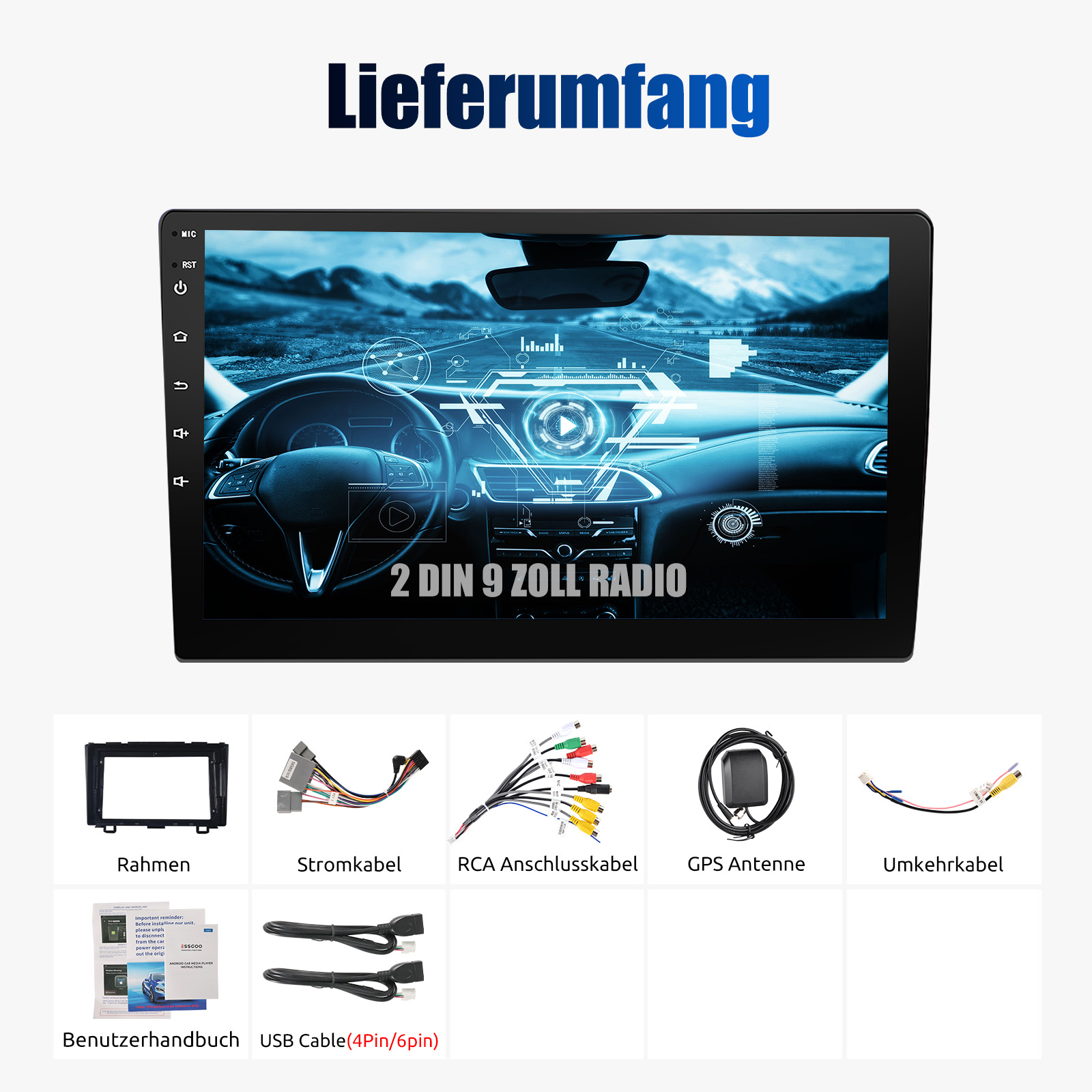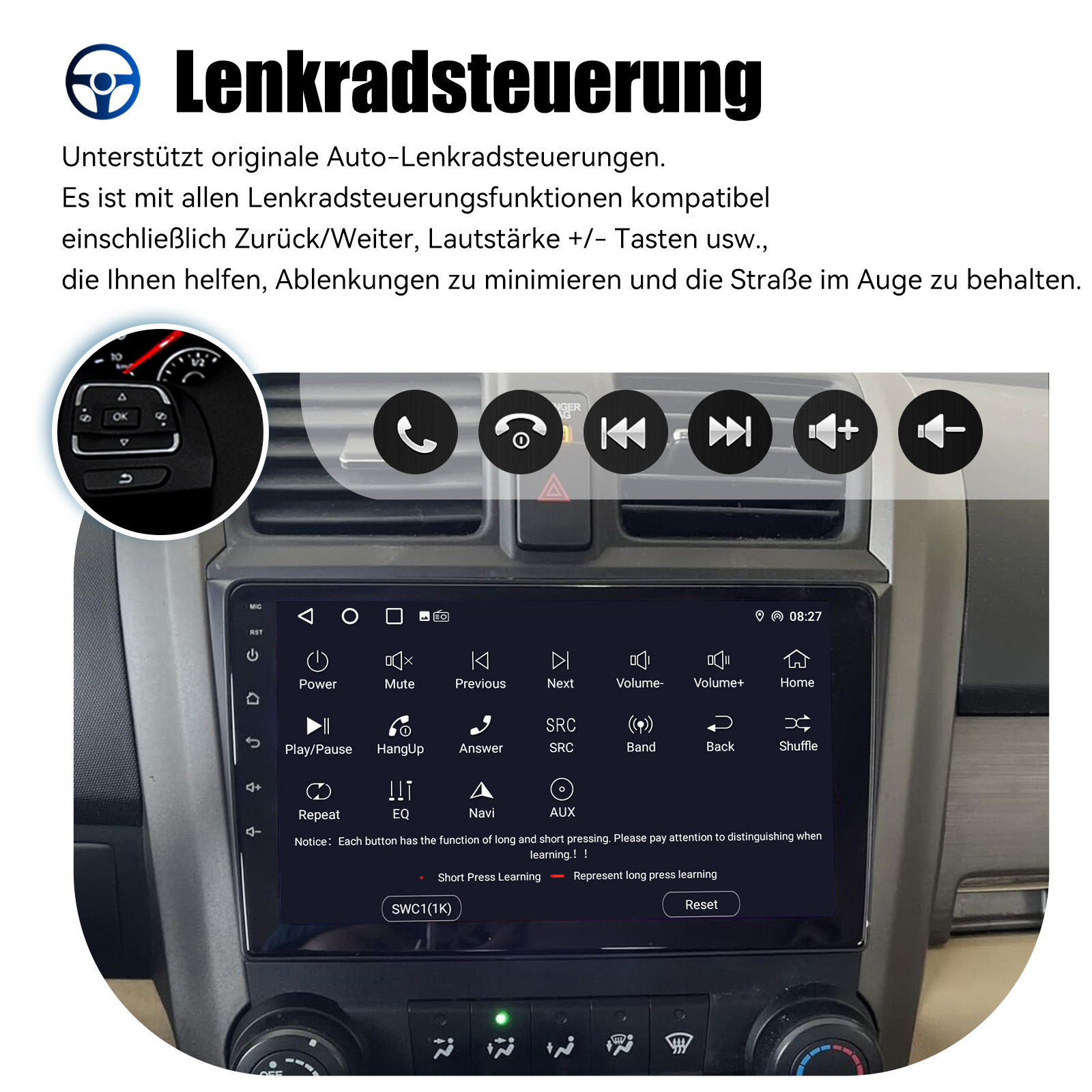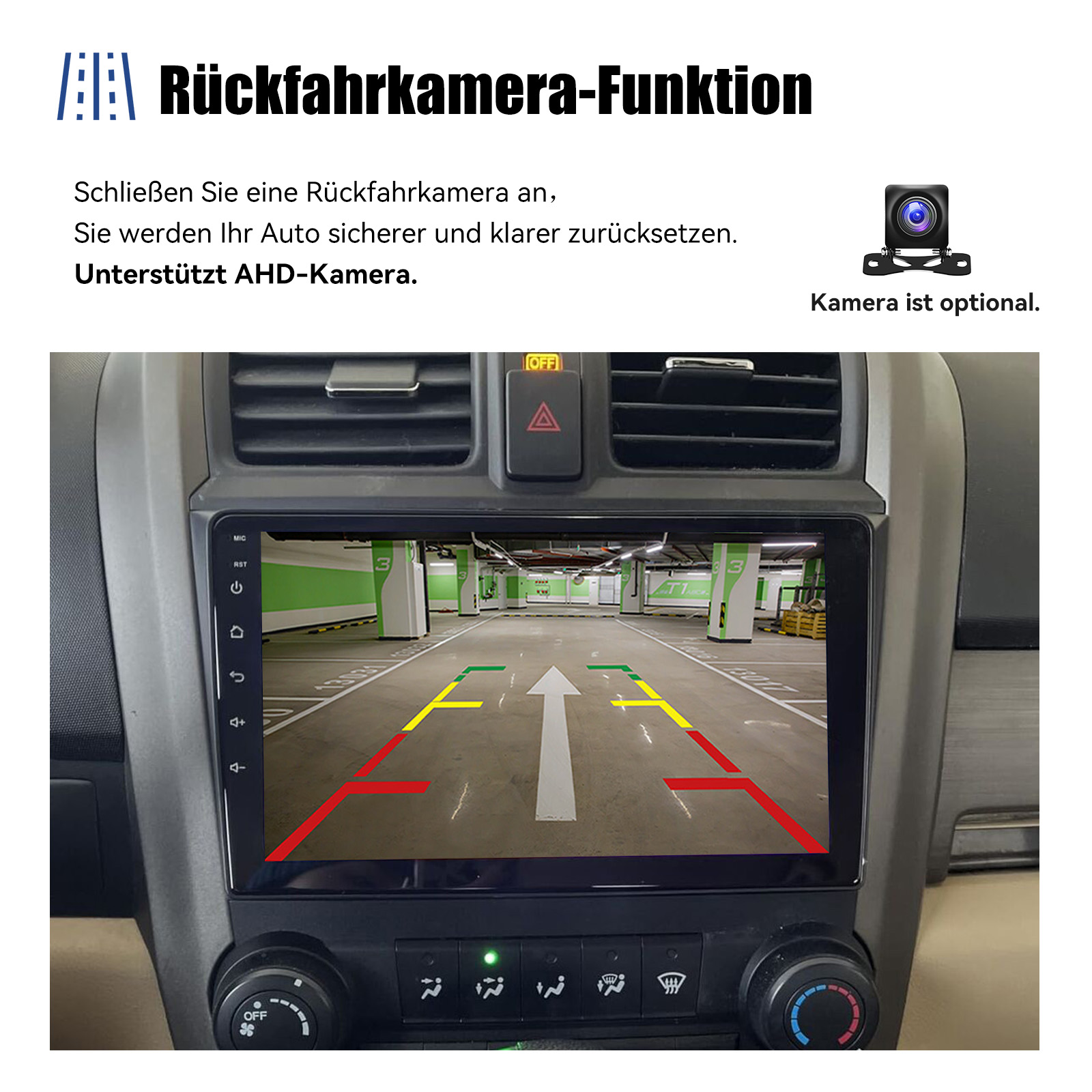 AHD Rückfahrkameraeingang und Lenkradkontrolle: Nach dem Anschluss an die Rückfahrkamera. Das Radio zeigt automatisch das Rückfahrbild an, sobald Sie den Rückwärtsgang einlegen. Machen Sie Ihr tägliches Rückwärtsfahren sicherer. Unterstützt AHD-Kamera. Unterstützt die originale Auto-Lenkradsteuerung , um das Fahren bequemer und sicherer zu machen.