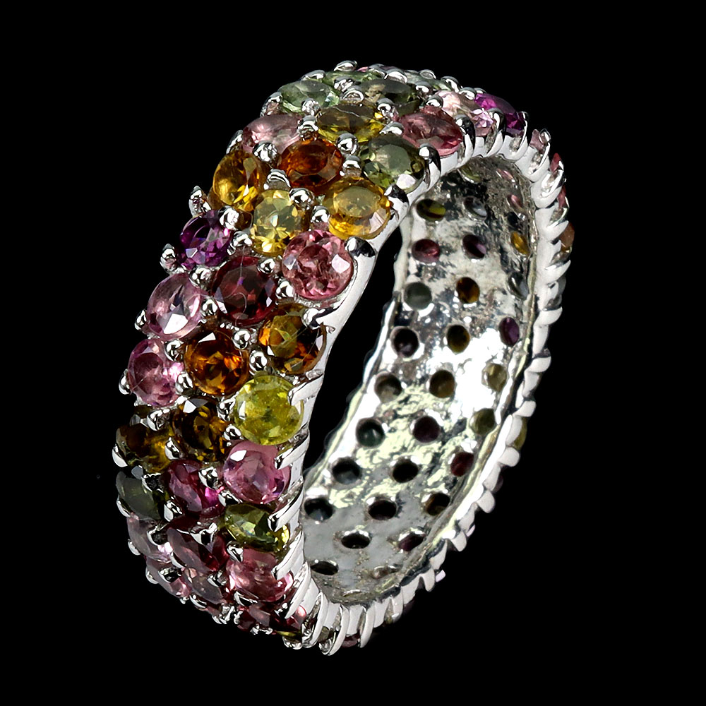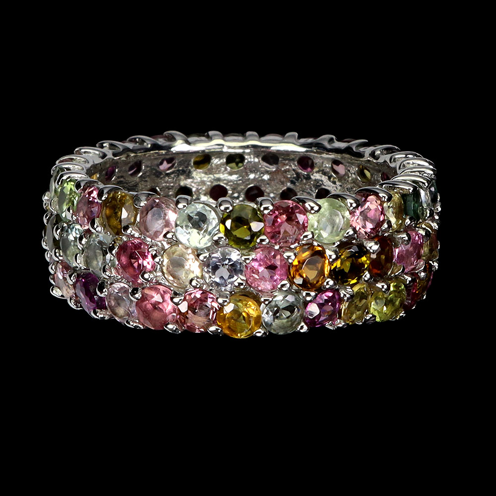 925 Sterling Silver Ring Round Tourmaline Natural Gemstone Jewelry Size 9