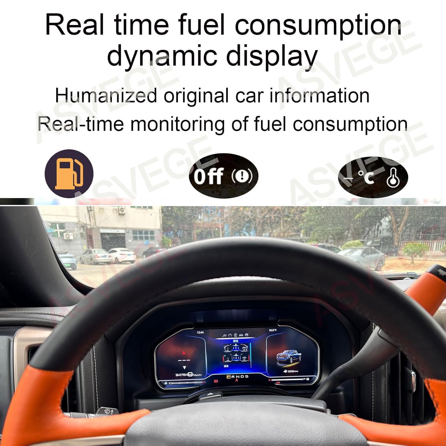 Display the car’s speed, fault lights, indicator lights, ACC, TMC, Gas, Radio, etc.…