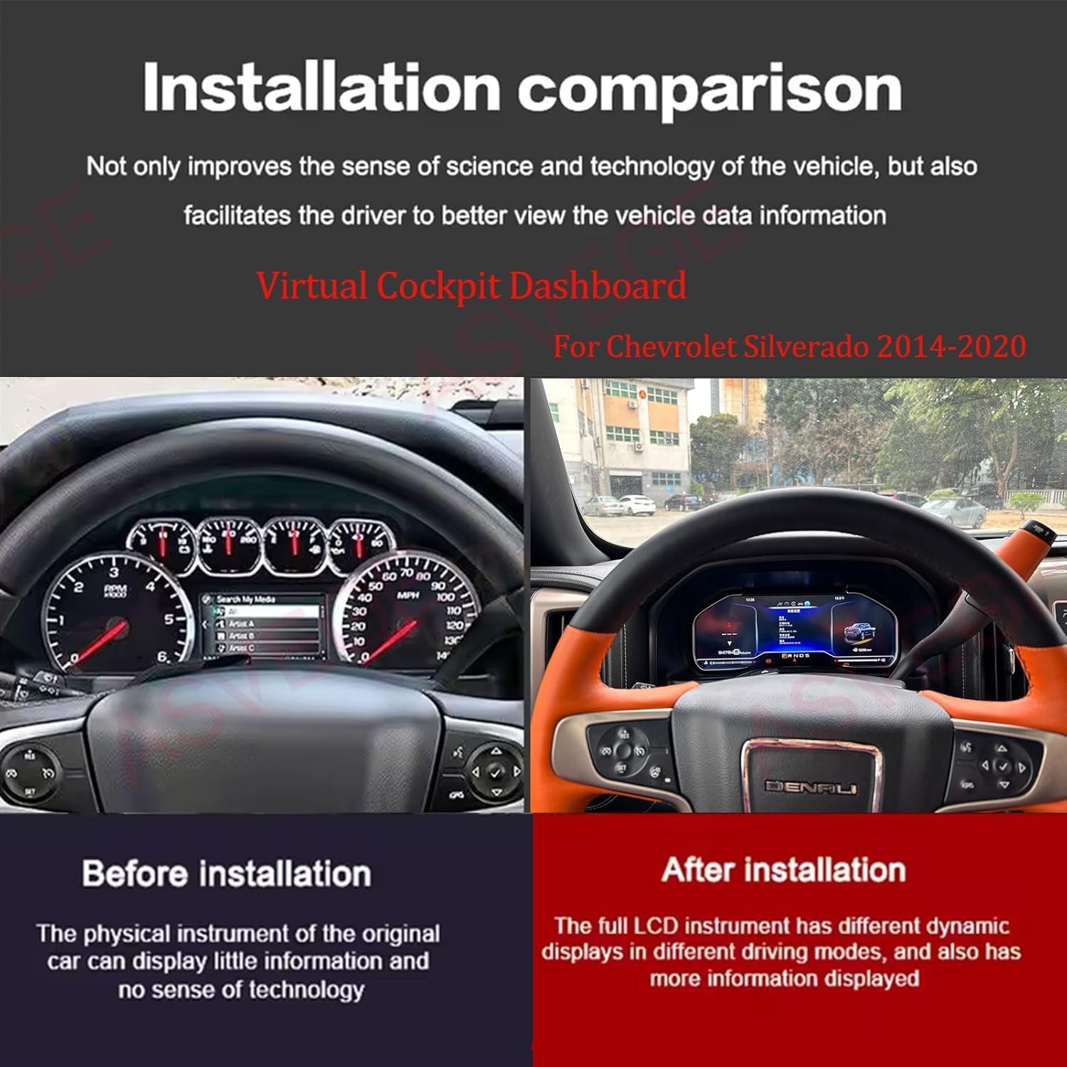 Digital Dashboard Panel Virtual Cluster CockPit LCD Speedometer for GMC Sierra Chevry Silverado 2014-2020