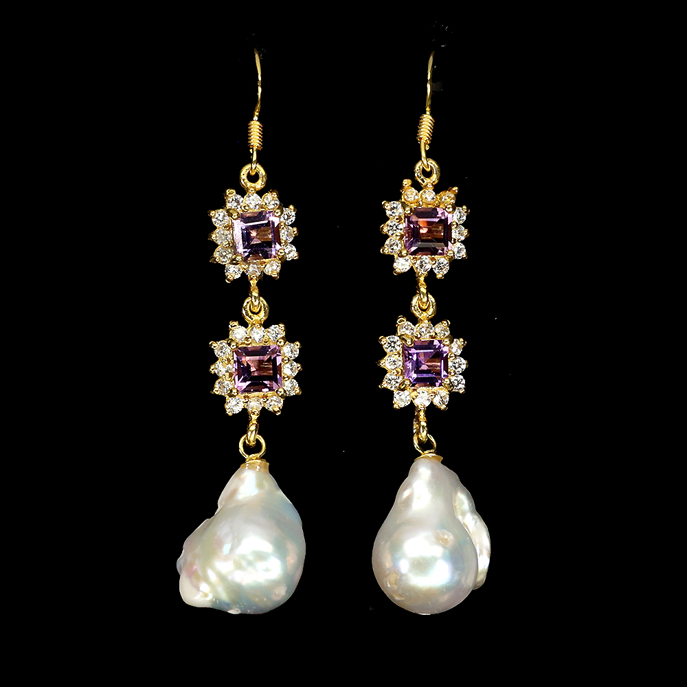 * STONE 1.0 TO 5.0 MM. * PEARL 16.0 X 13.0 MM. * FACE EARRINGS 58.0 X 13.0 MM.