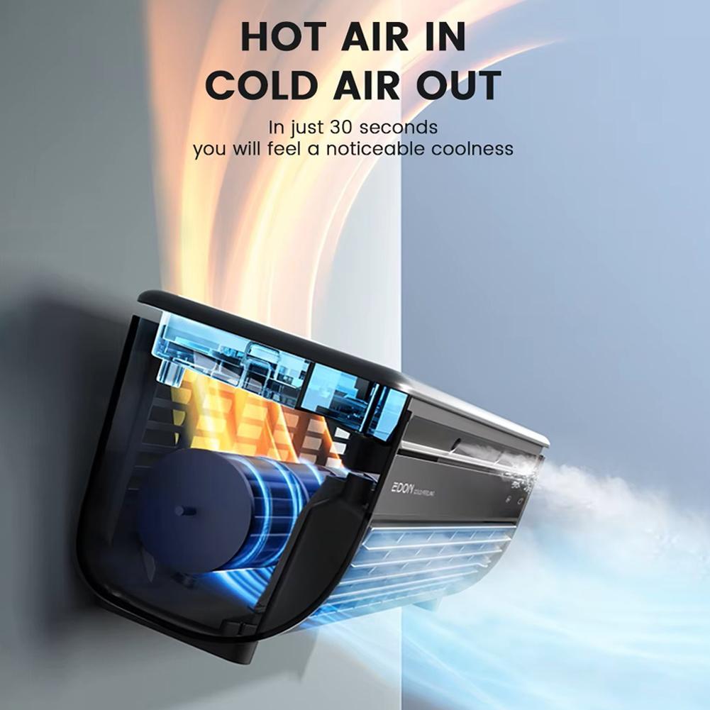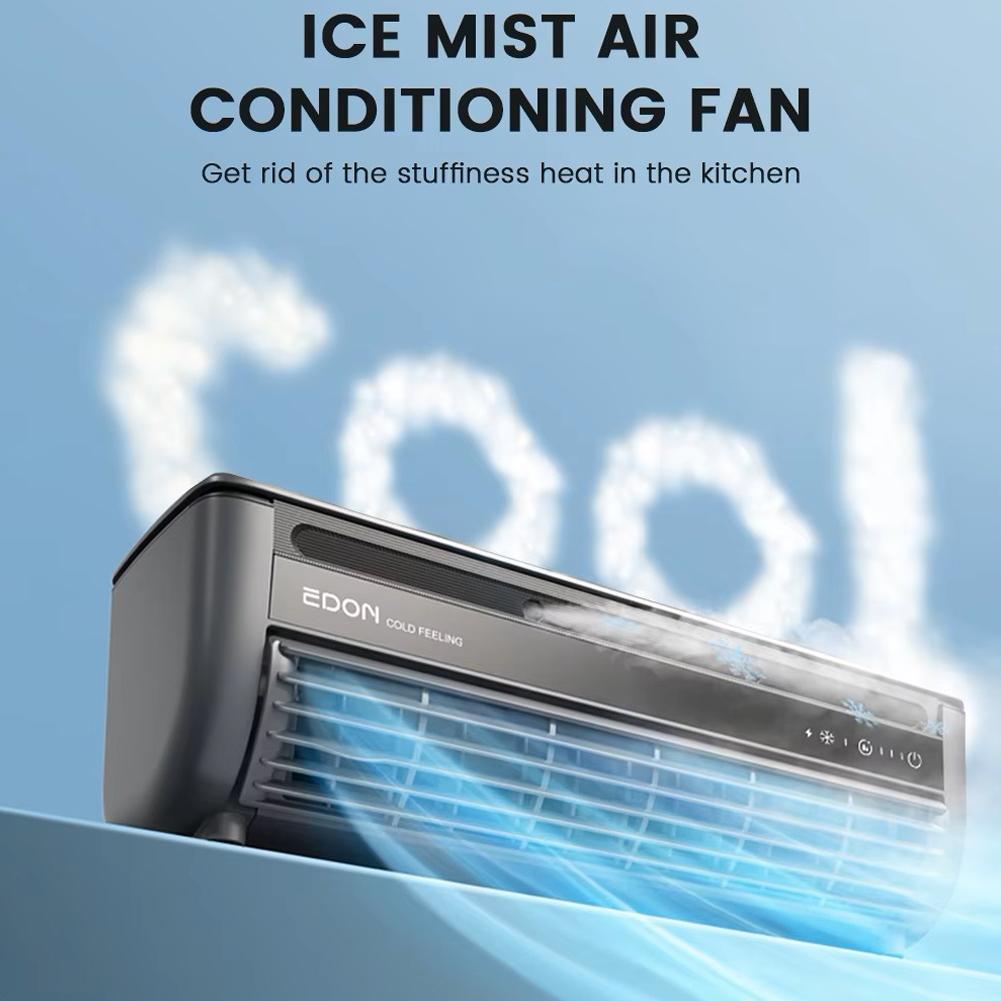 Experience breakthrough cooling with the world-first mini semiconductor ice mist cooler. Combining advanced semiconductor technology, powerful airflow, and jet ice mist, this wall-mounted fan delivers intense cooling that quickly conquers kitchen heat, providing refreshing cold breeze where you need it most.