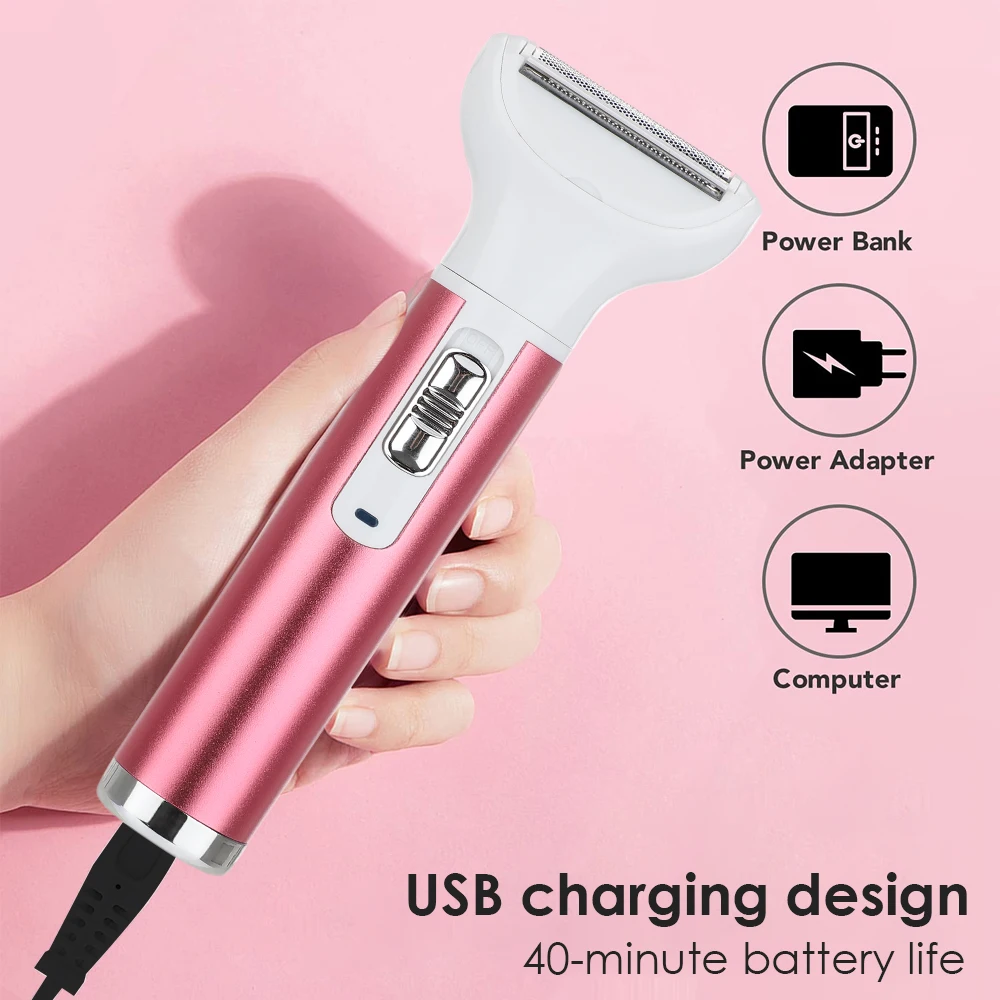 Unser Nass- und Trockenrasierer für Frauen kann unter der Dusche verwendet werden, mit einem wasserdichten Trimmerkopf, den Sie einfach mit der mitgelieferten Bürste oder unter fließendem Wasser reinigen können. Bitte beachten Sie, dass der Ladeanschluss nicht wasserdicht ist. Halten Sie das Ladegerät für den Damenrasierer daher von Wasser fern.