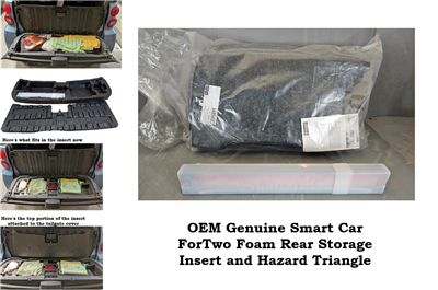 This listing is for an OEM Genuine SMART CAR Trunk Foam Storage (Stowage) Box Compartment and Warning Hazard Triangle.