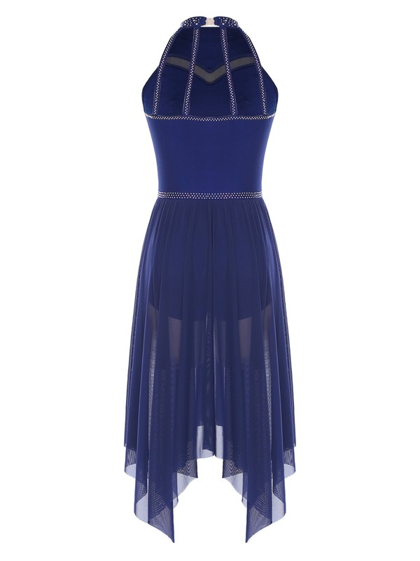 The irregular mesh ruffled skirt hem gives a dynamic and fashionable look, adding a sense of movement and fluidity to the dance.