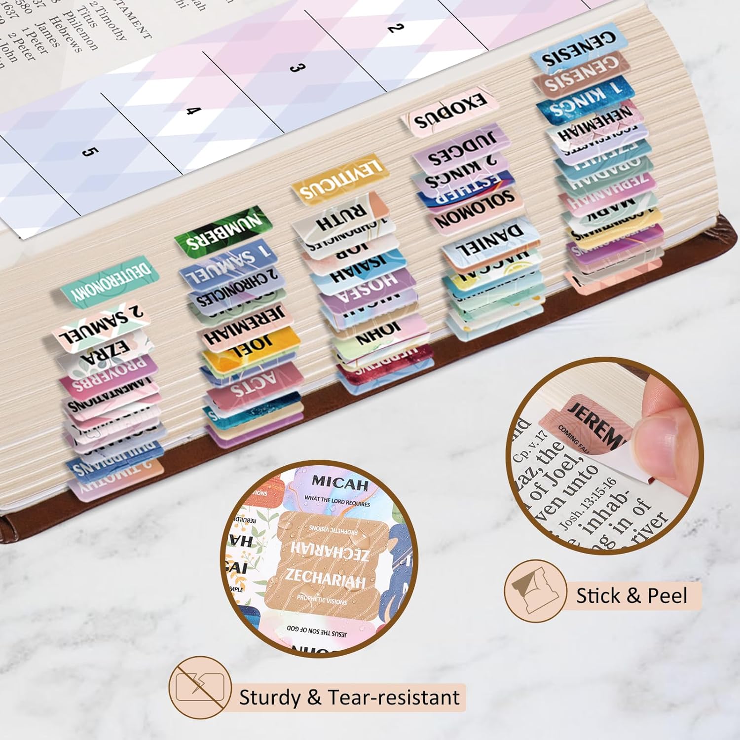 [EASY TO APPLY] These self-adhesive tabs are pre-cut for easy peel, and you can stick them in place with the alignment guide instructions that come with the package, making your bible navigation more simplified.