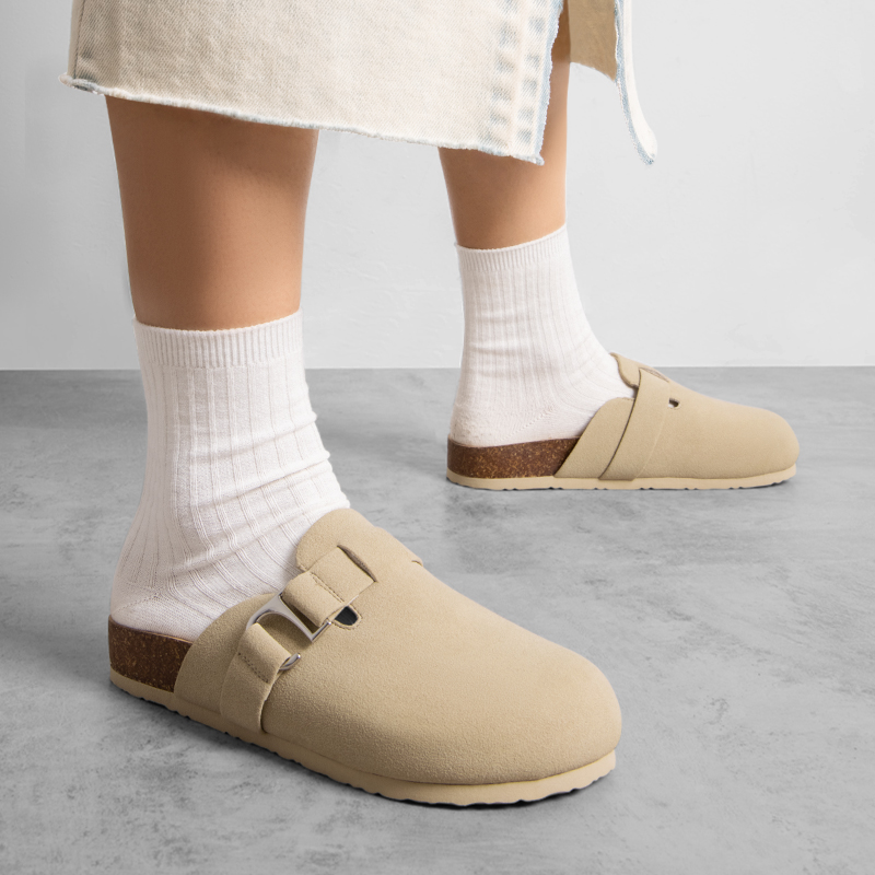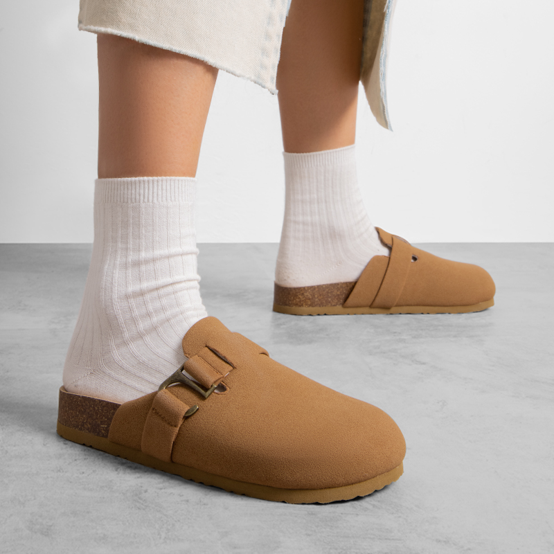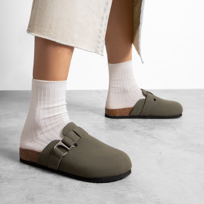 Discover the ultimate blend of comfort and style with these chic slip-on loafers for women. Featuring a unique buckle detail and a cork sole for all-day support, these shoes are the perfect addition to your everyday ensemble. Whether you're running errands or enjoying a leisurely brunch, these loafers are designed to provide both elegance and ease.