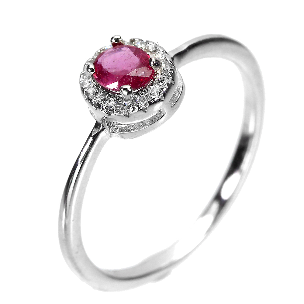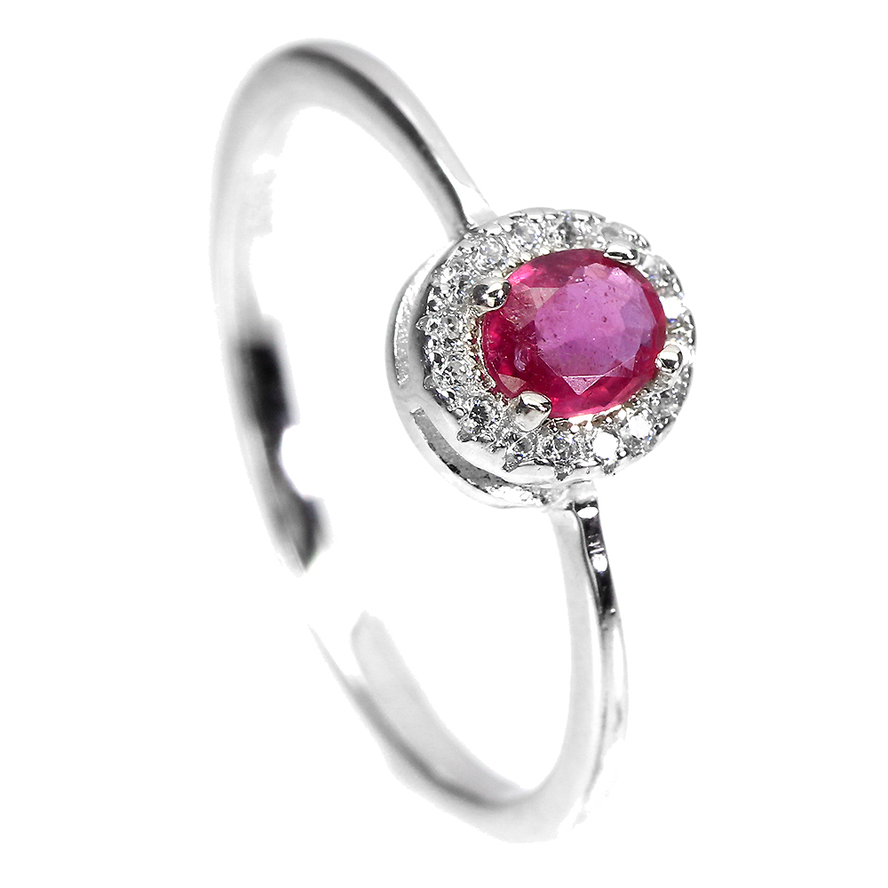 Heated Oval Ruby 5x4mm Simulated Cz White Gold Plate 925 Sterling Silver Ring 8