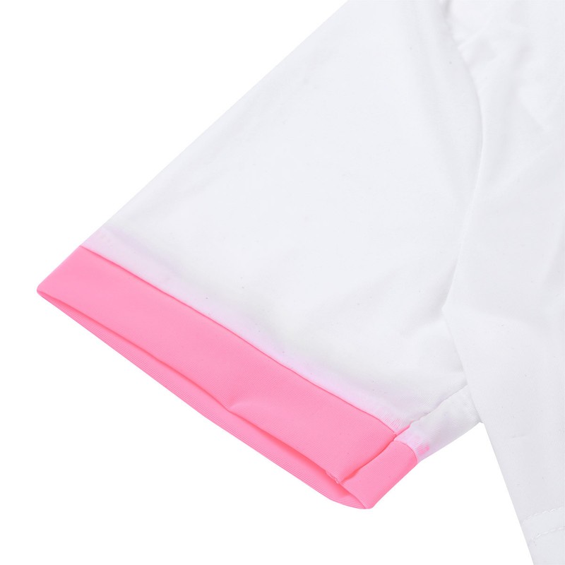 Short sleeves and round neckline crop tops, with stripes on sleeves and collar.