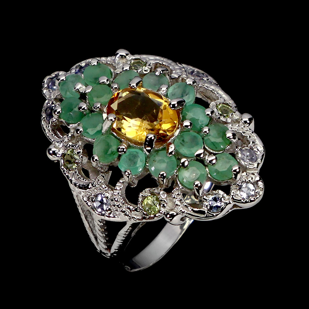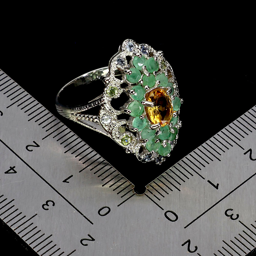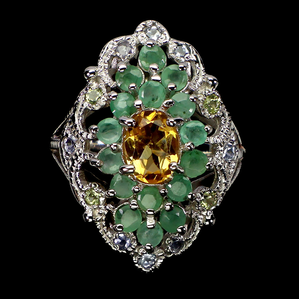 925 Sterling Silver Ring Oval Citrine 7x5mm Emerald Peridot Gemstone Size 7.5