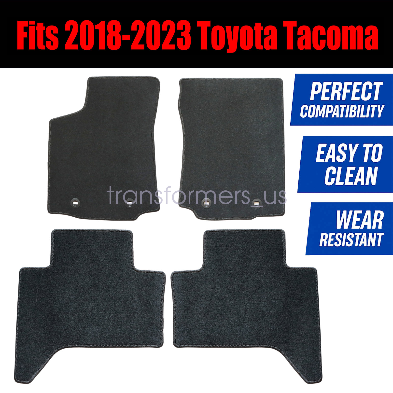 OEM Replacement Black Velour Front & Rear Floor Mats Carpet Fits 2018-2023 Toyota Tacoma