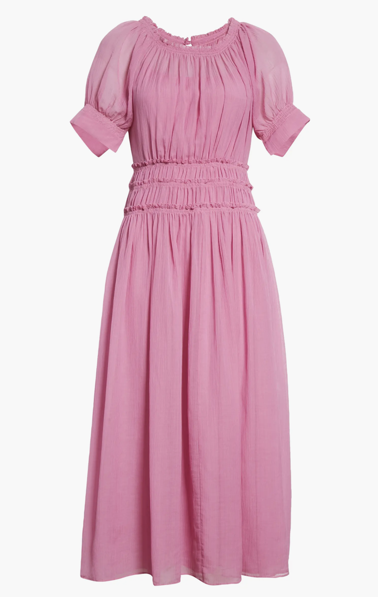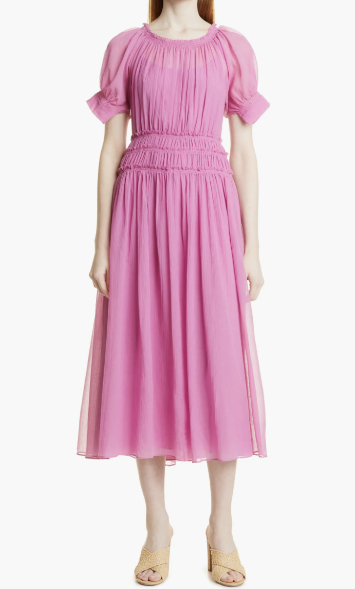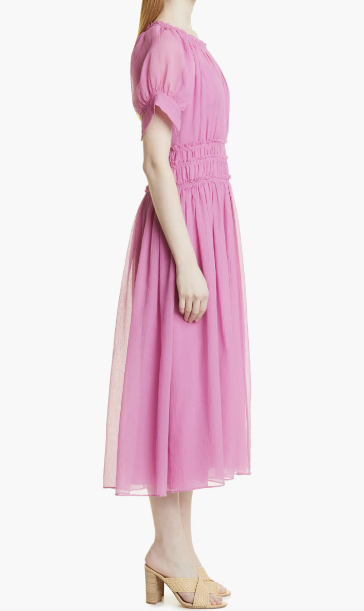 Rebecca Taylor Women's Rich Pink Cotton Silk Midi Pleated Dress Size 2 New $495