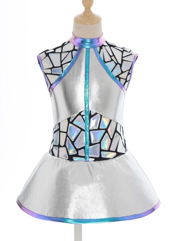 Designed with crew neck, sleeveless, high waist flared a-line dress alien costume for girl, back zipper closure is easy to put on and take off.