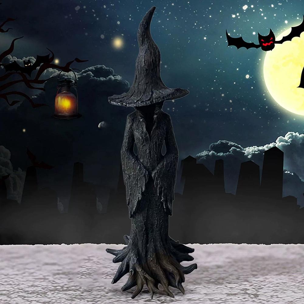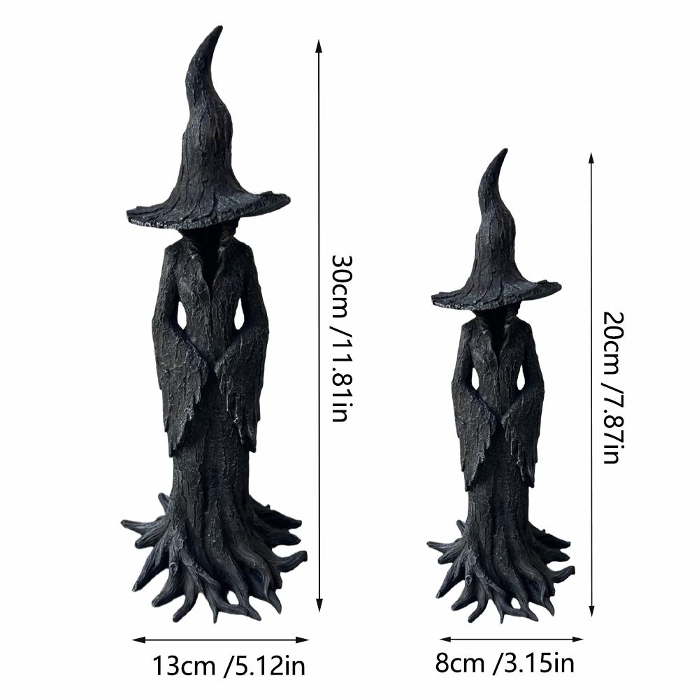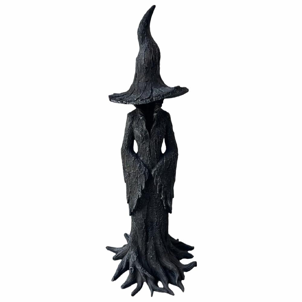 Mystical witch design – this 11.8-inch tall statue features a mysterious witch figure with tree-rooted robes and a crooked hat, perfect for creating a dark and enchanting atmosphere.