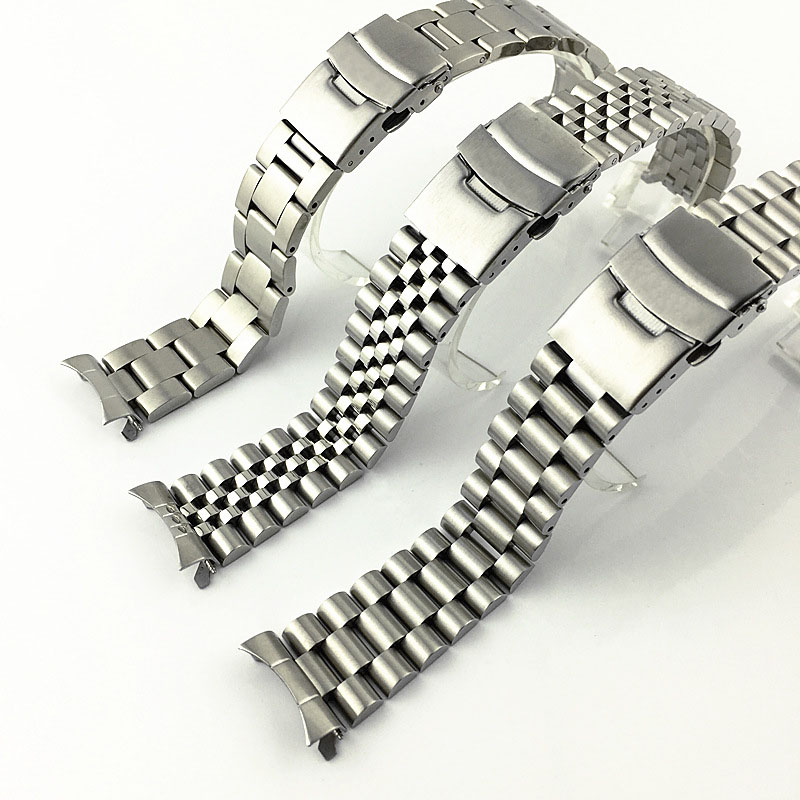Curved End Replacement Solid Stainless Steel Watch Band 18 19 20mm 21 22mm 23 24 26 28 30mm Watch Strap Wristband SKX009