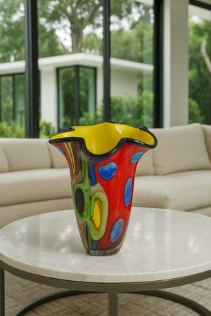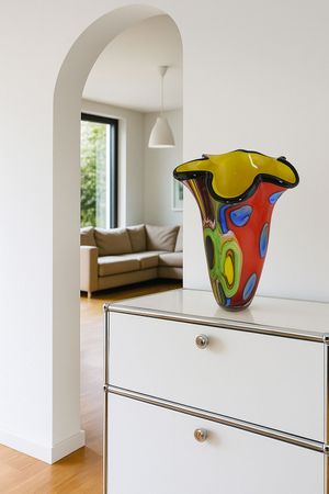 Die Vase „VILLA PICASSO“ ist ein einzigartiges Sammlerstück aus massivem, handgearbeitetem Glas – ein echtes Glaskunstwerk für Liebhaber besonderer Wohnaccessoires.