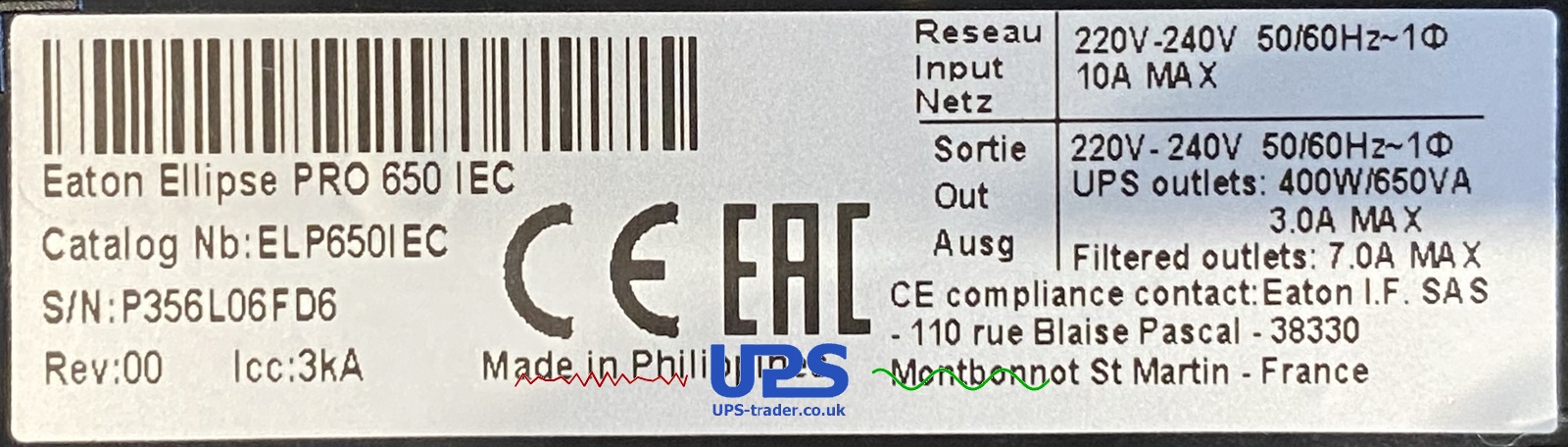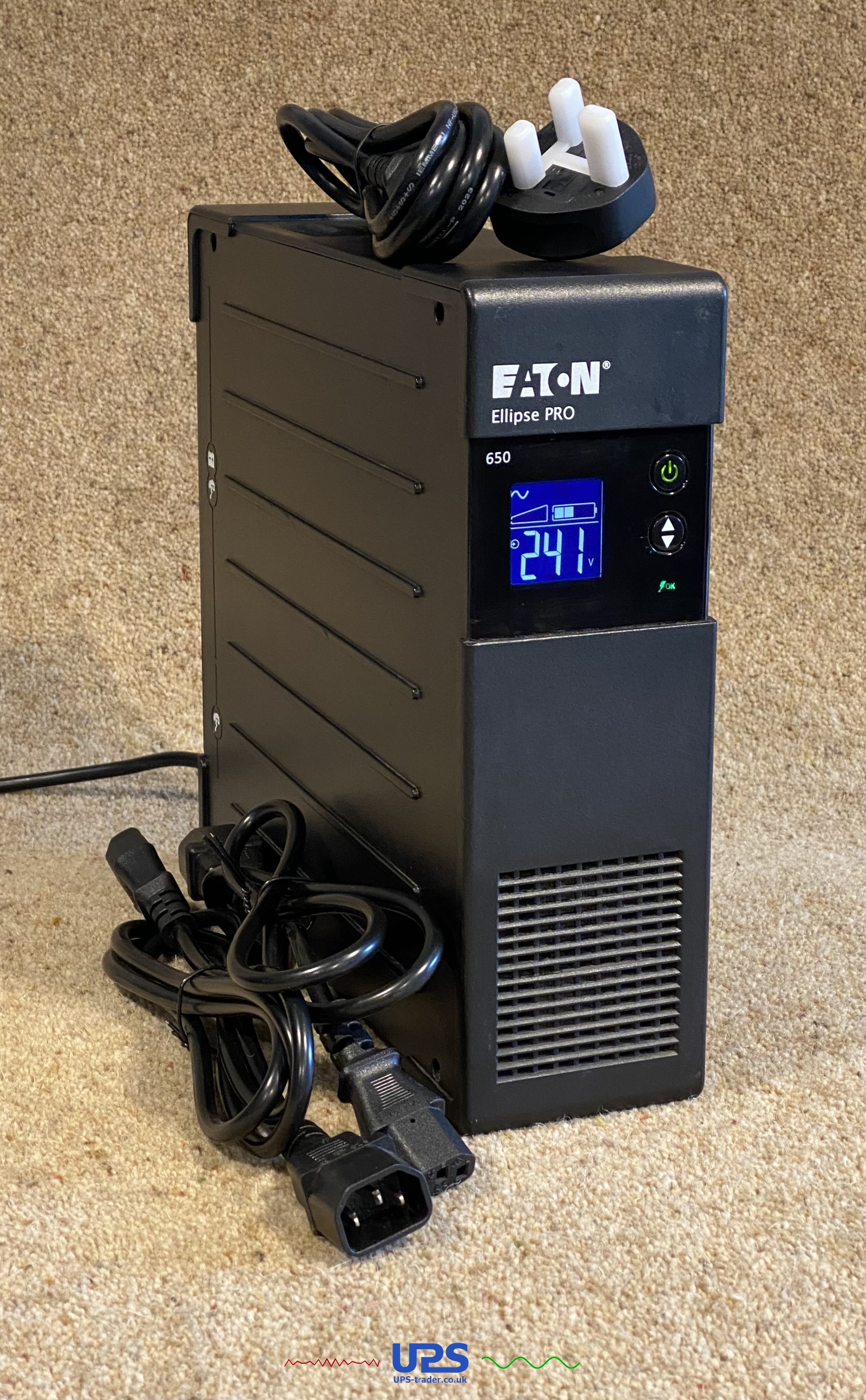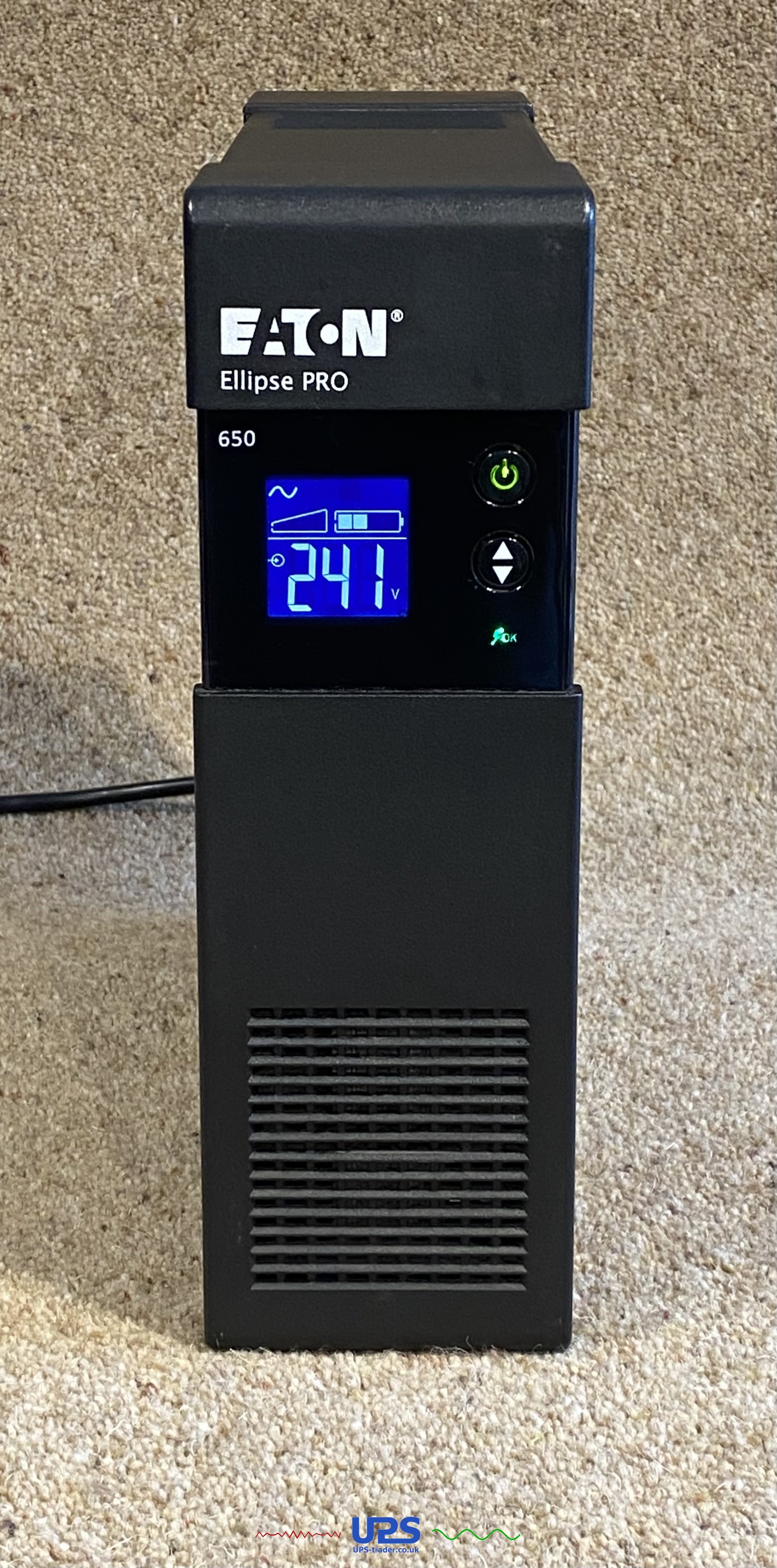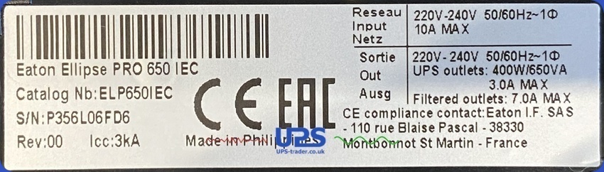 This refurbished Eaton Ellipse Pro 650 IEC UPS has had a new battery fitted and been thoroughly tested by one of our UPS technicians.