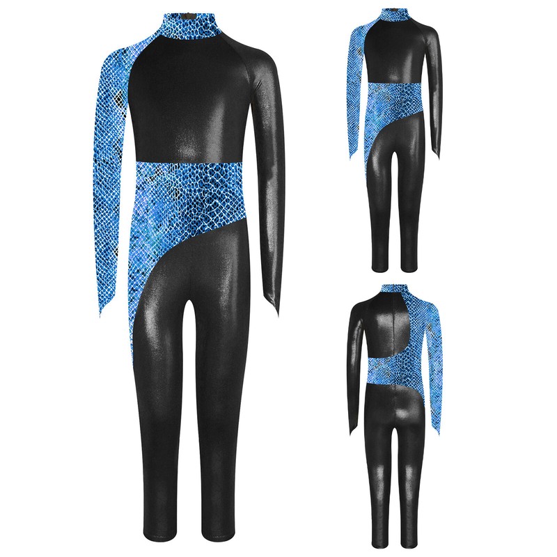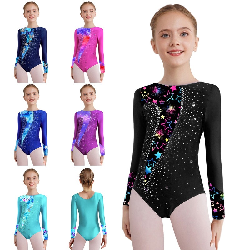 iEFiEL Girls Metallic Printed Gymnastics Unitard Long Sleeve Full Body Jumpsuits