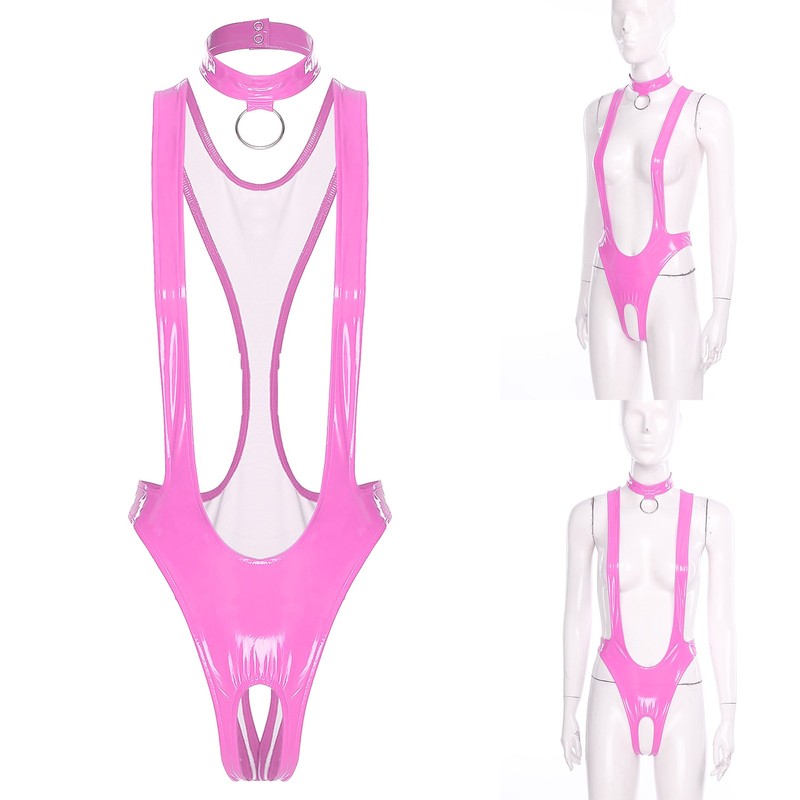 Crafted from high-quality patent leather and alloy, the bodysuit is shiny and durable, offering a unique tactile and visual experience.