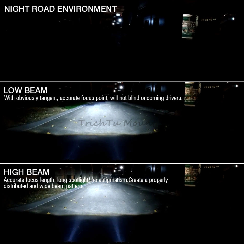 1) Low Beam: With obviously tangent, accurate focus point, will not blind oncoming drivers.