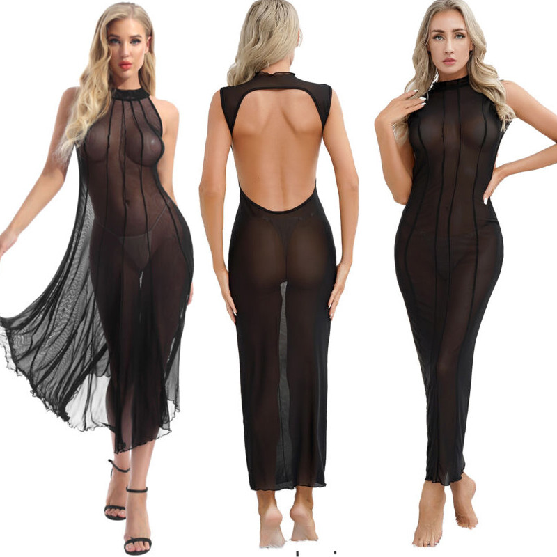 Women See-through Mesh Sleeveless Bodysuit Ladies Stretchy Backless Hollow Out Leotard Nightwear.