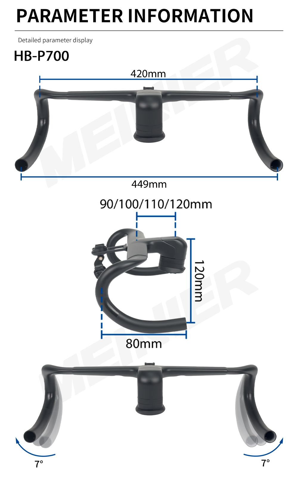 Handlebar Size: the size is 420x90/100/110/120. If you need one of these sizes, pls contact customer service;