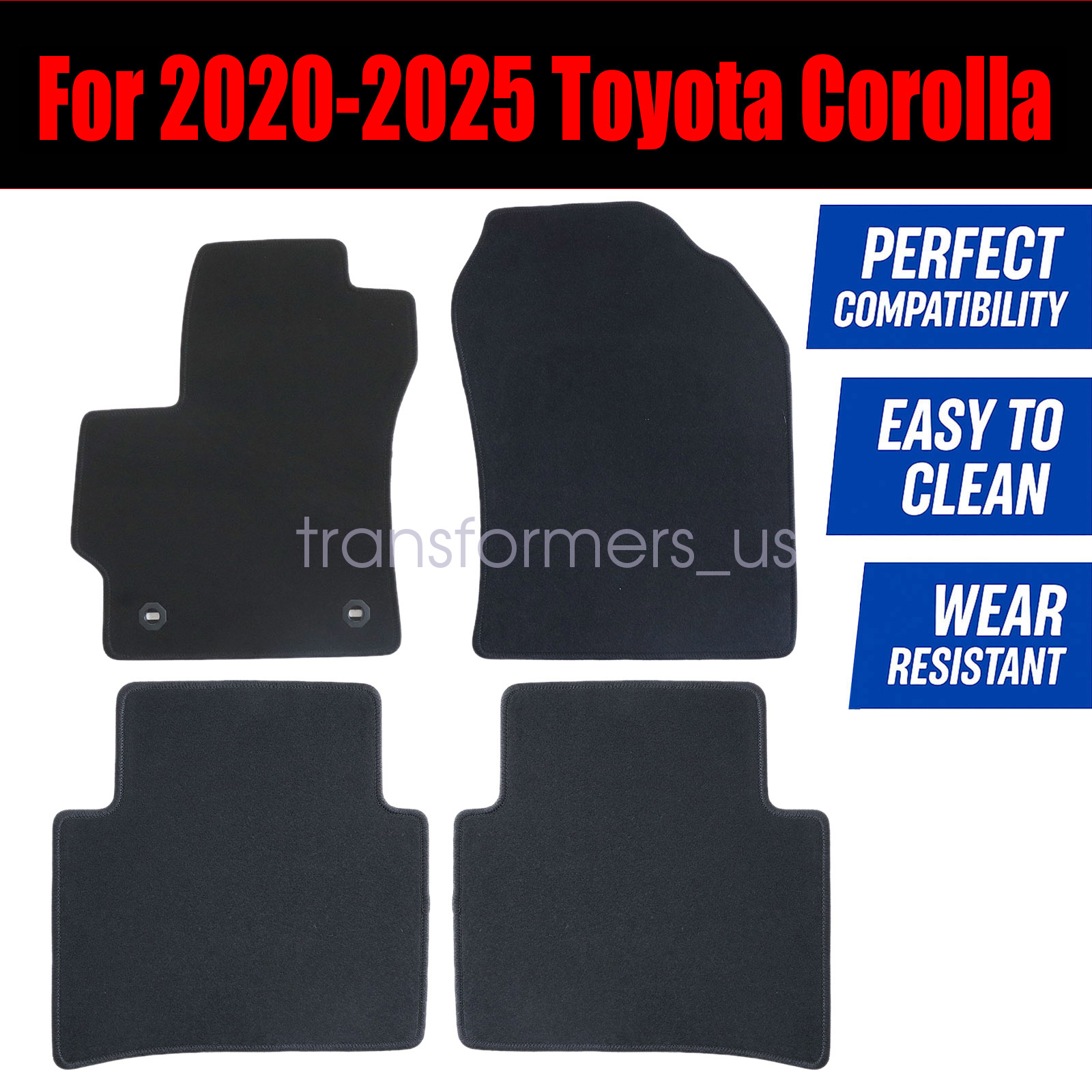 OEM Replacement Black Velour Front & Rear Floor Mats Carpet Fits 2020-2025 Toyota Corolla