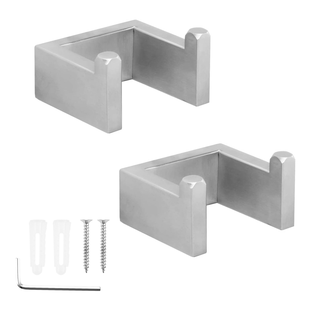2PCS Double Clothes Hooks Robe Hook Hanger Stainless Steel for Kitchen Bathroom