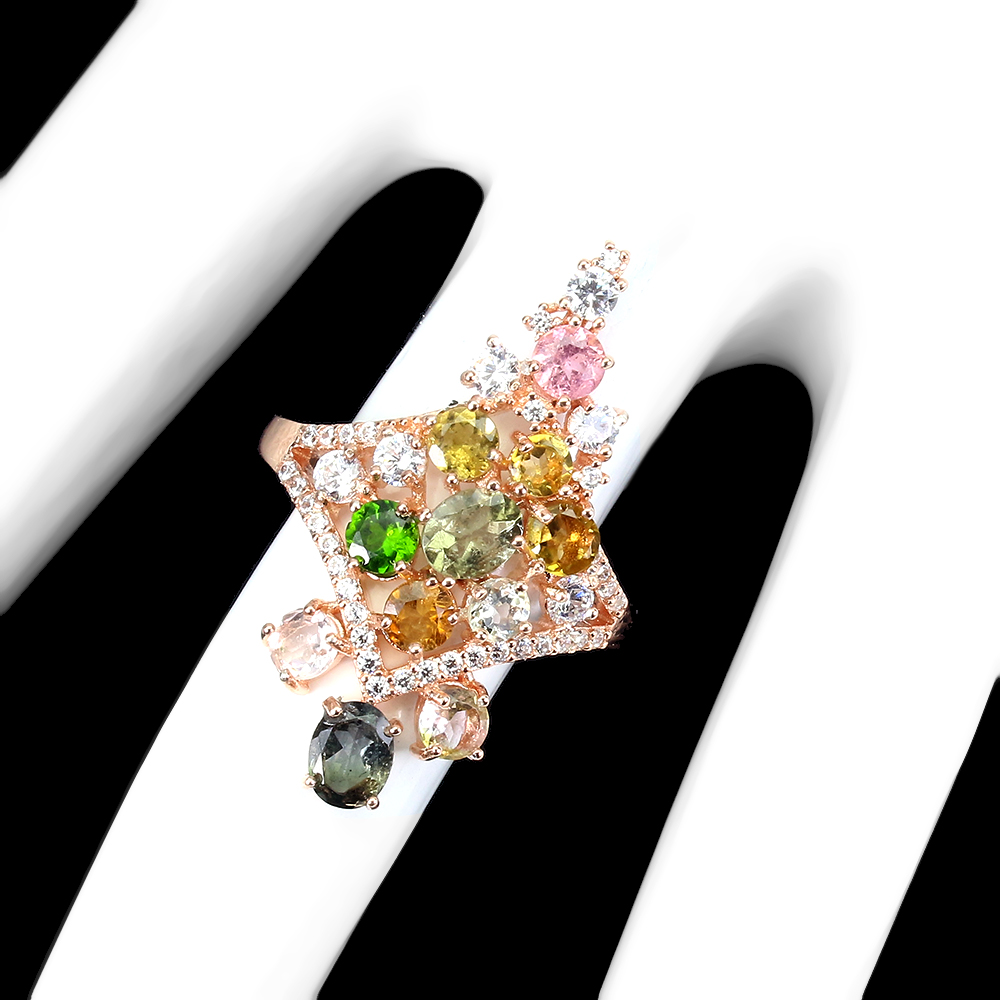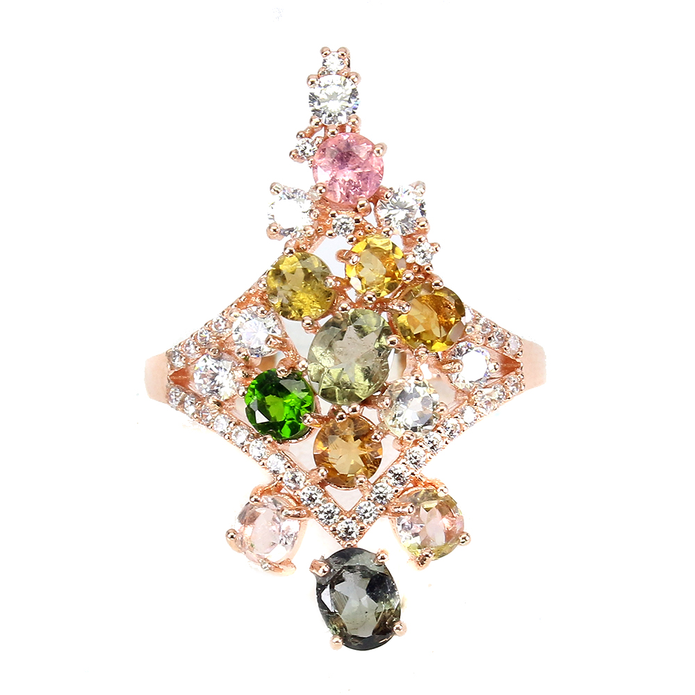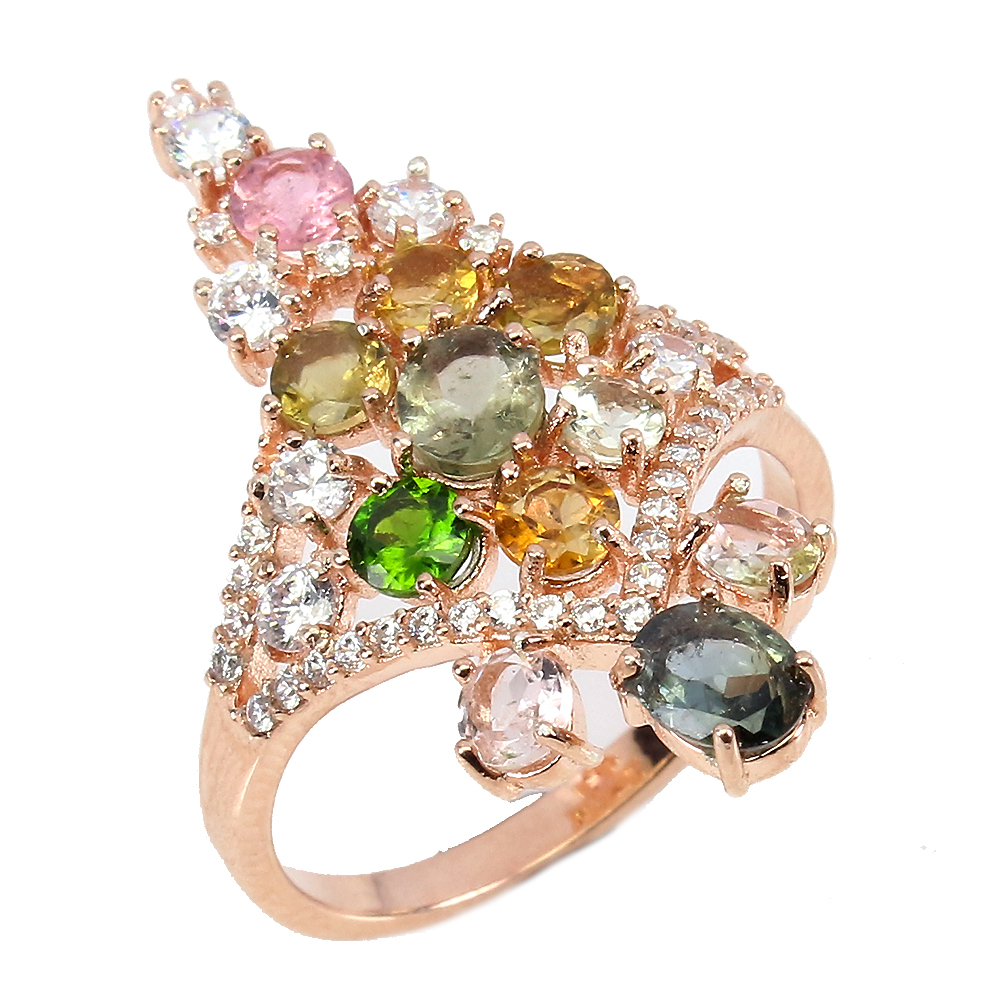 Unheated Oval Tourmaline 5x4mm Cz 14K Rose Gold Plate 925 Sterling Silver Ring
