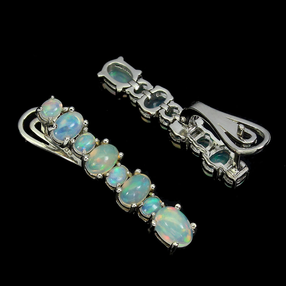 Unheated Oval Fire Opal Rainbow Full Flash 7x5mm 925 Sterling Silver Earrings
