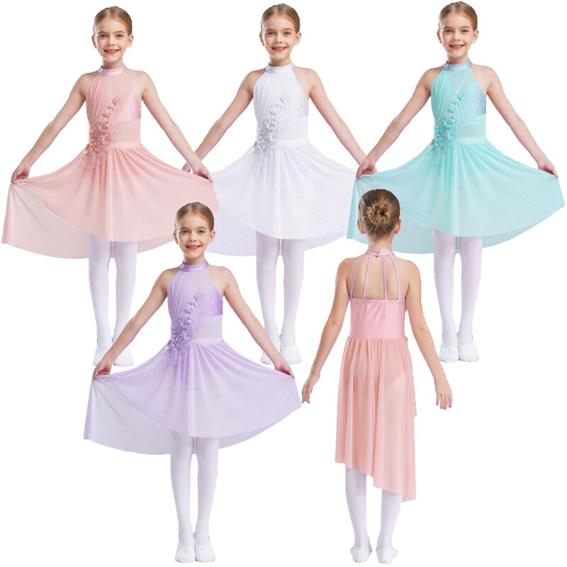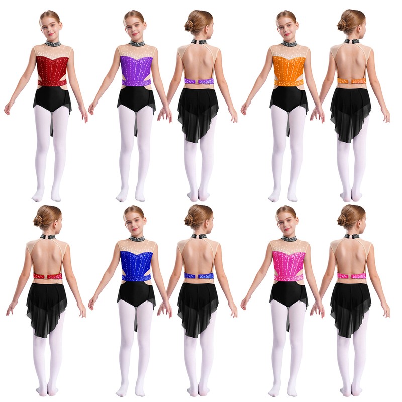 Kids Girls Dancewear Figure Ice Skating Leotard Stage Performance Dresses Jazz