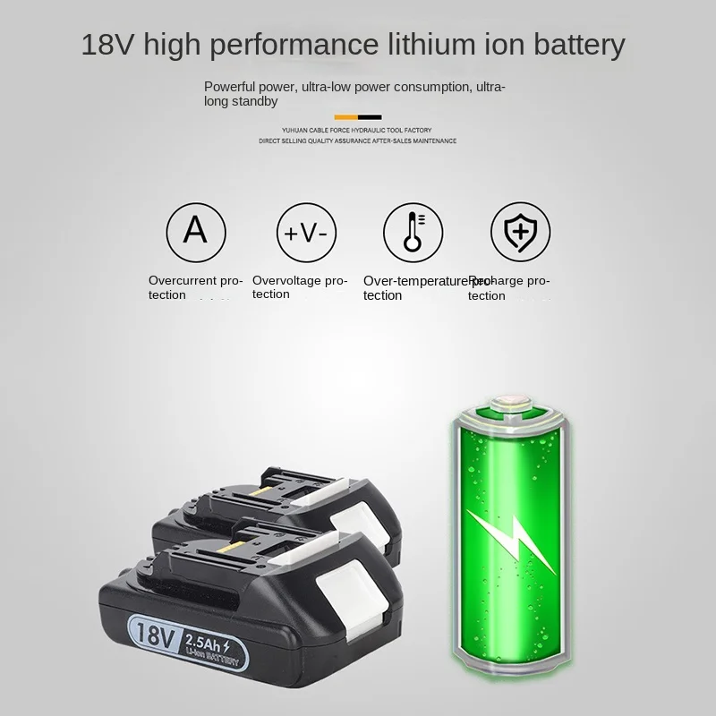 Model PZ-300 Rechargeable Electric Hydraulic Clamp Output 60KN stroke 17mm Battery voltage 18V/2.5Ah Charging time about 1 hour Net weight Gross weight 4.1kg/9kg Crimp range: Copper 10-300mm2 Aluminum 16 240mmi Accessories: 2 batteries, 1 charger, 1 shoulder strap