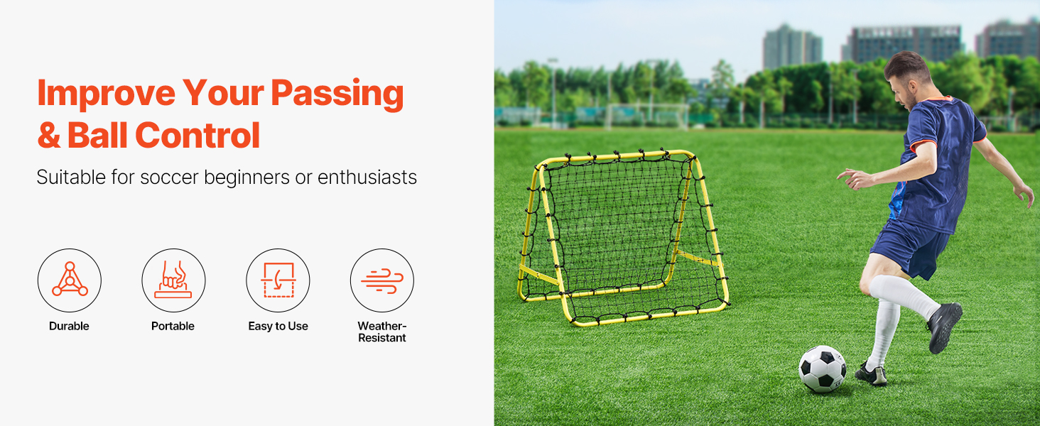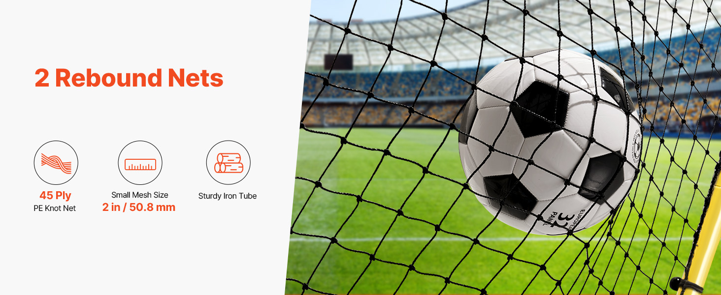 Ausgestattet mit zwei Netzen bietet unser Scooer-Rebounder-Netz unterschiedliche Rückprallwinkel, maximiert die Trainingsvielseitigkeit und verbessert Ihre Ballkontrolle.