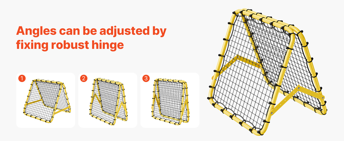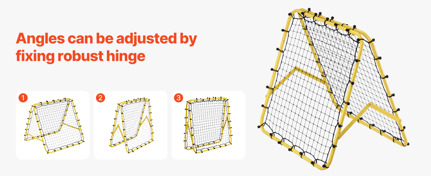 Einstellbarer Winkel: Unser Fußball-Rebounder-Netz verfügt über eine Verbindungsstange mit Löchern und abnehmbaren Kunststoffteilen. Mit diesen Komponenten können Sie den Winkel des Netzes ganz einfach anpassen, um unterschiedliche Rücksprunghöhen zu erreichen. Diese Flexibilität stellt sicher, dass das Übungsfußballnetz eine breite Palette von Trainingsanforderungen erfüllen kann.