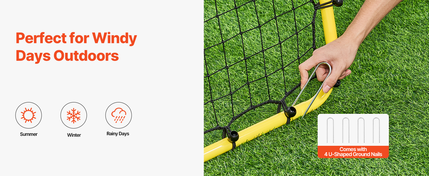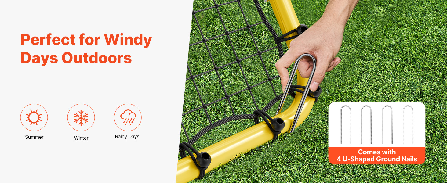Stabilität für den Erfolg: Das Fußballtrainingsgerät umfasst 4 U-förmige Bodennägel. Egal, wie intensiv Ihr Training wird, das Netz bleibt stabil und bietet eine zuverlässige Plattform zur Verbesserung Ihrer Fähigkeiten.
