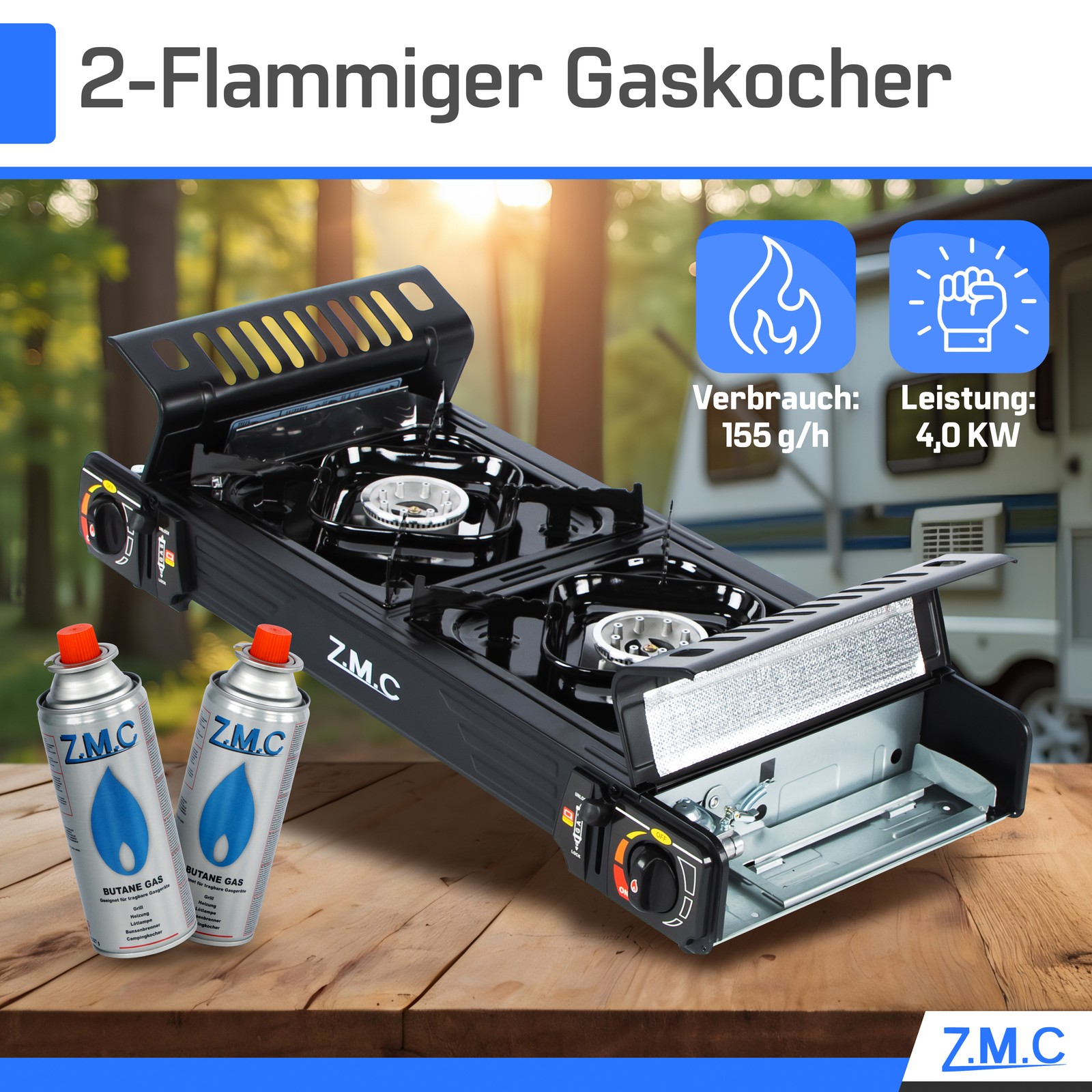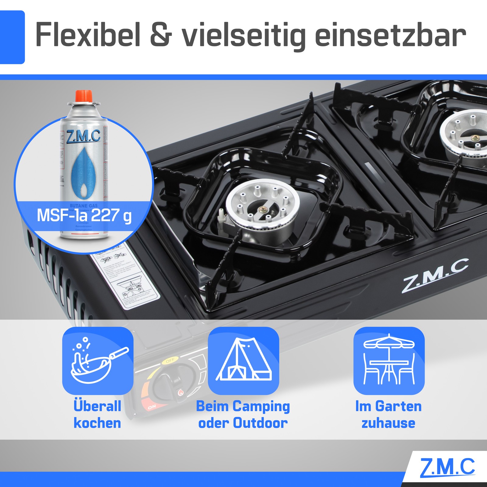 UNABHÄNGIGES KOCHERLEBNIS: Erleben Sie mit unserem Z.M.C Premium Campingkocher maximale Freiheit beim Kochen. Ob im Garten, auf Reisen oder beim Camping, genießen Sie leckere Gerichte fernab von Stromquellen bei einer Brenndauer von bis zu 5 Stunden.