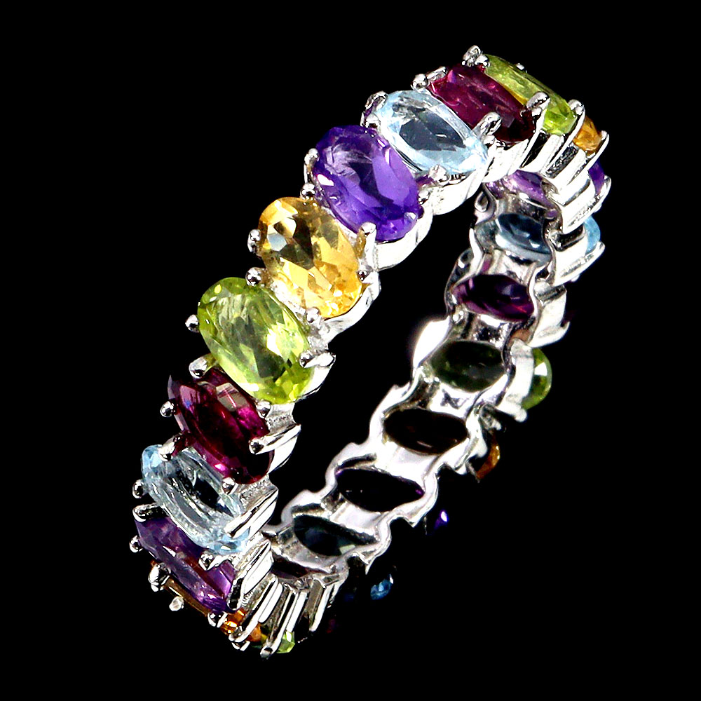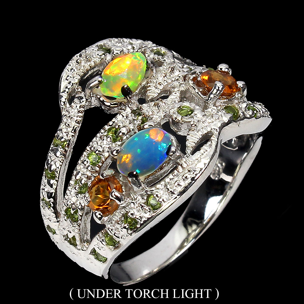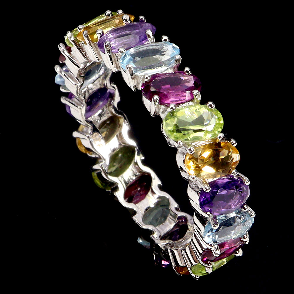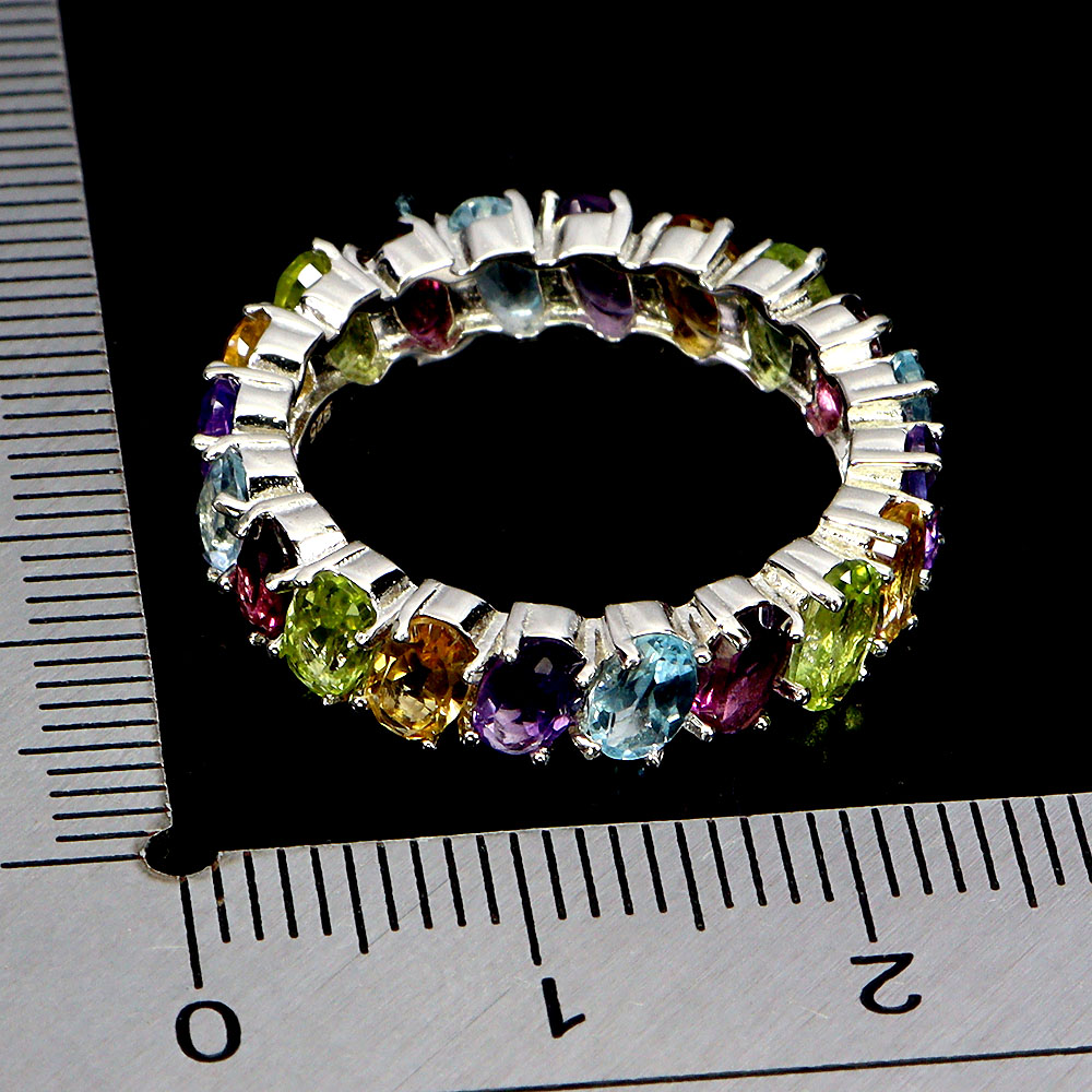 925 Sterling Silver Ring Oval Citrine Aquamarine Natural Gemstone Jewelry Size 7.5