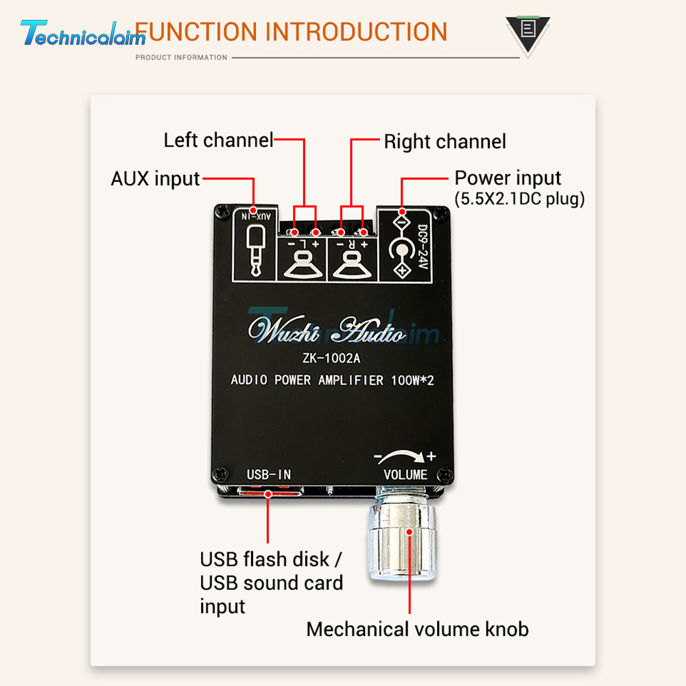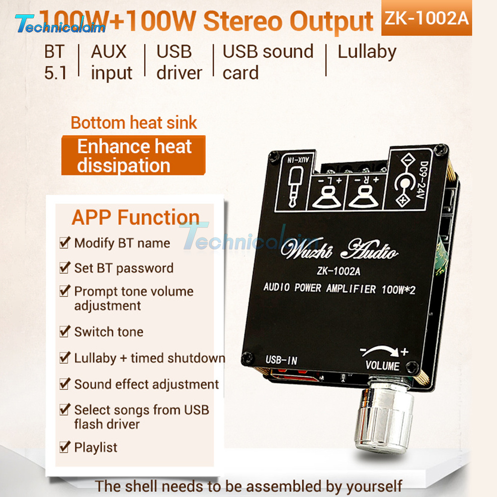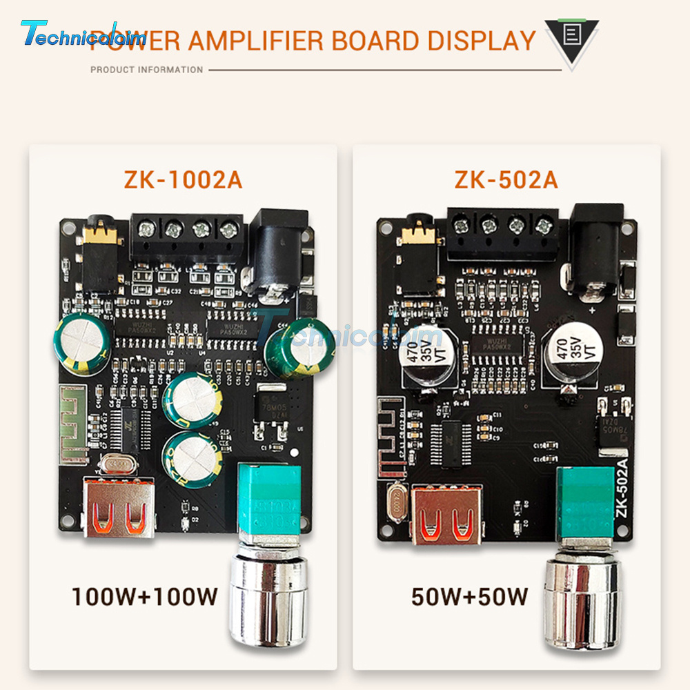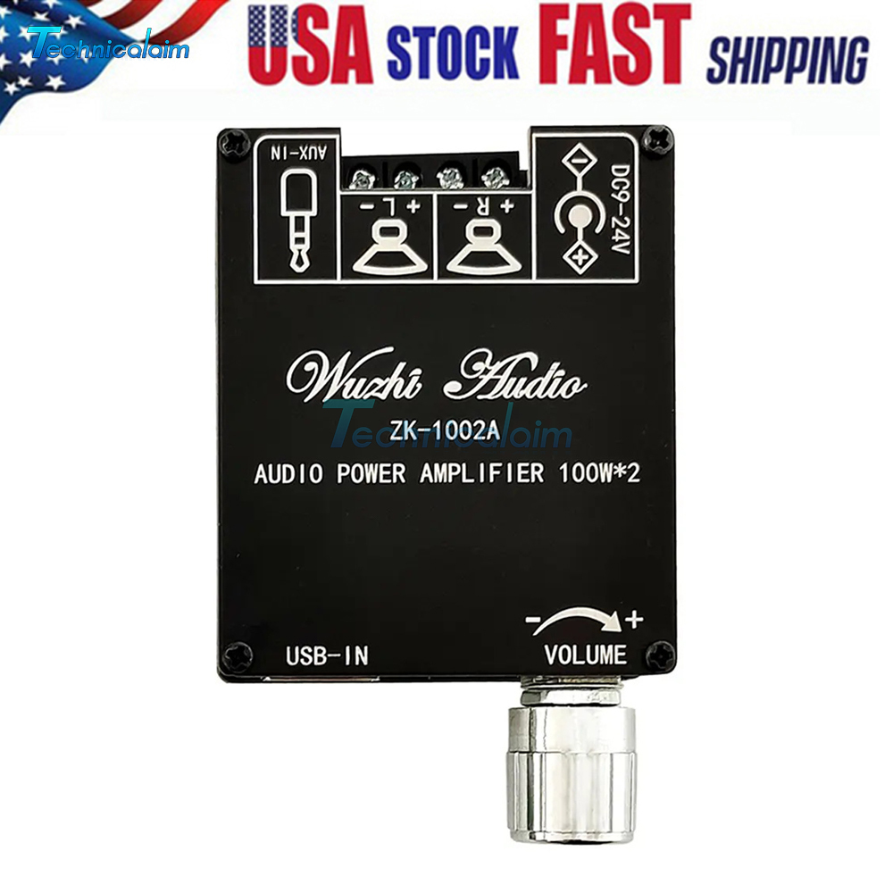 ZK-1002A 2.0 Channel Bluetooth Digital Audio Power Amplifier Board 100W+100W USA