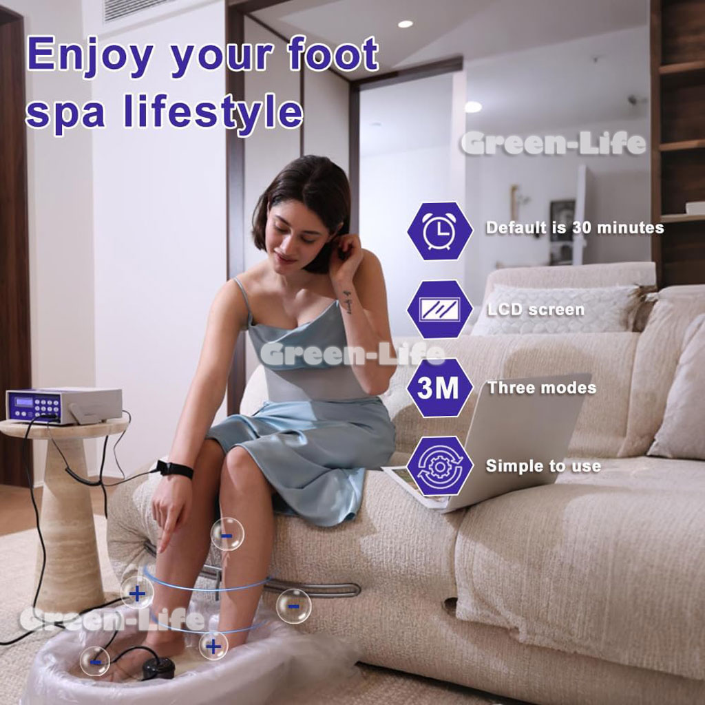 【Easy To Use and Wide Application】 - just wear the wrist strap, put your foot in a tub, simple connection with the machine, array and power cord, drop 0.1oz salt, turn on the power, you can enjoy a easy foot spa. It id also suitable for family, individual, beauty club and spa club