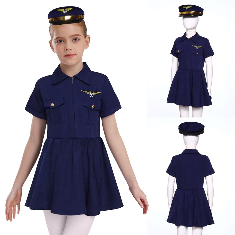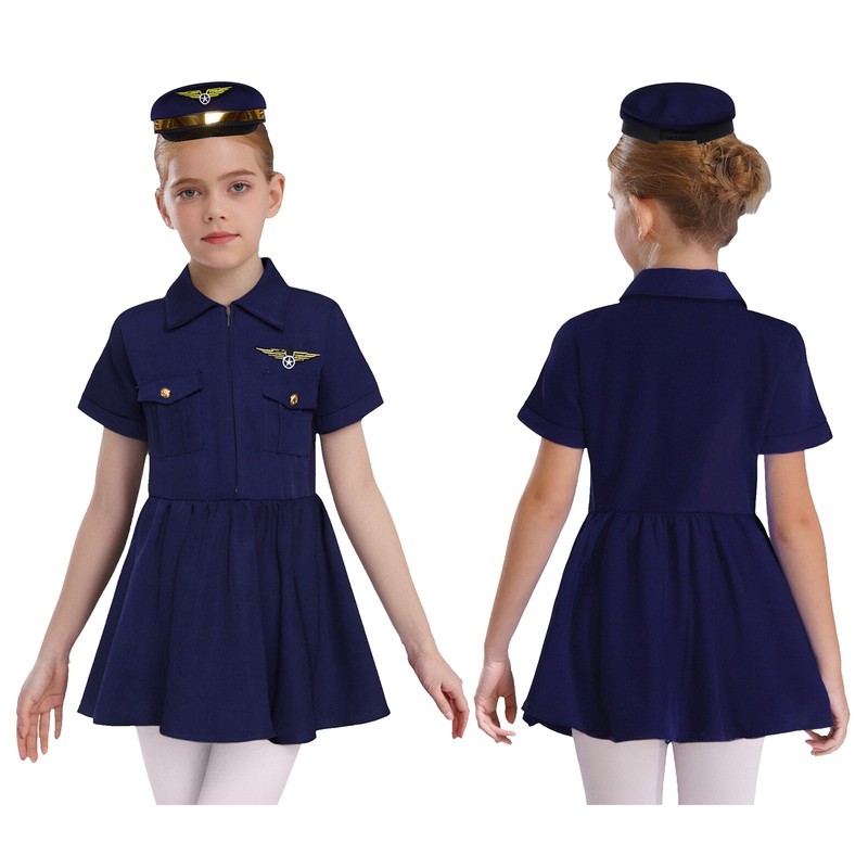 Navy blue is trendy and suitable for a pilot-themed look, making your little girl stand out in the crowd. Come with a hat.