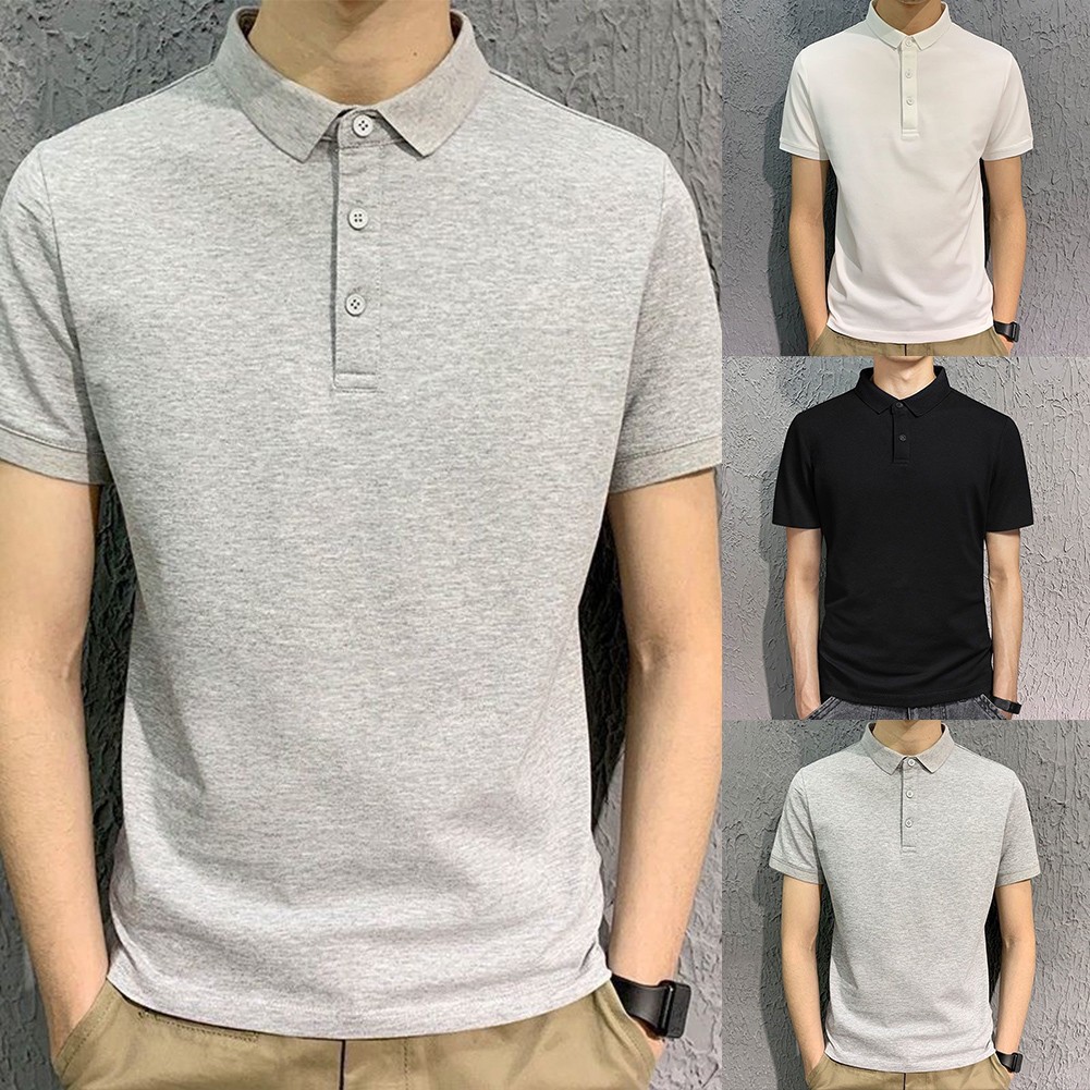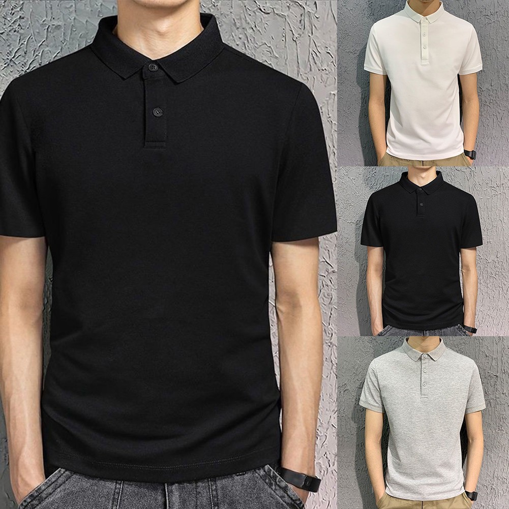 * Artikelmerkmale:Herren, Revers, Einfarbig, Kurzarm, Locker, Freizeit, Business, T-Shirt, Einfach, All-Match