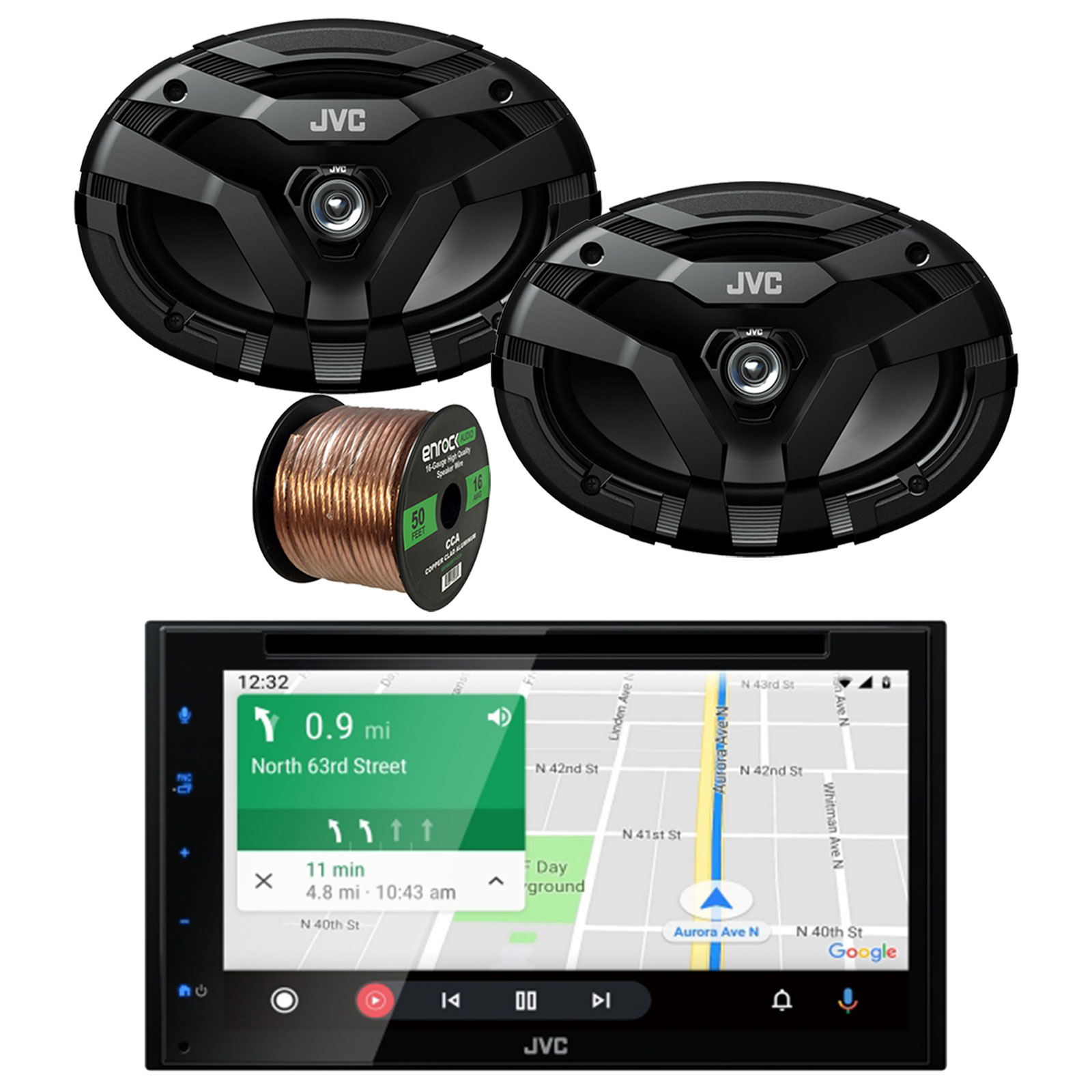 JVC KW-V660BT Double DIN AM/FM Stereo Bluetooth USB DVD Player Multimedia Receiver Bundle Combo with 2x 6x9" 2-Way Coaxial 400 Watts Peak Power Car Audio Speakers and 16G 50 Feet Speaker Wire