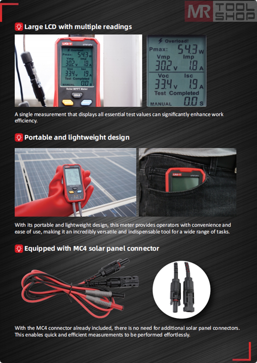 UNI-T UT673PV Solarpanel Tester Meter Photovoltaik Multimeter 800W Vmp60V 35A