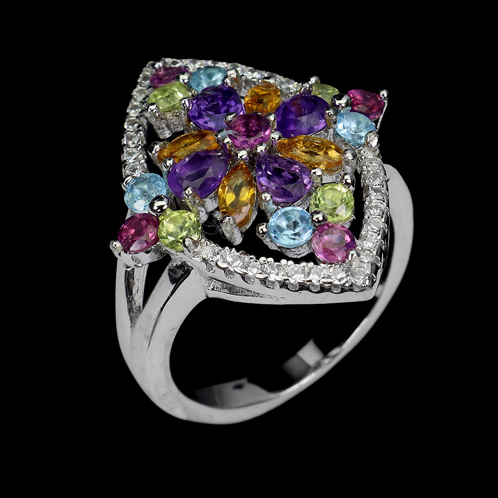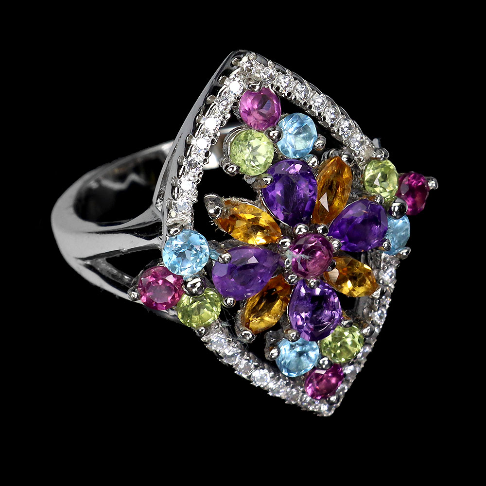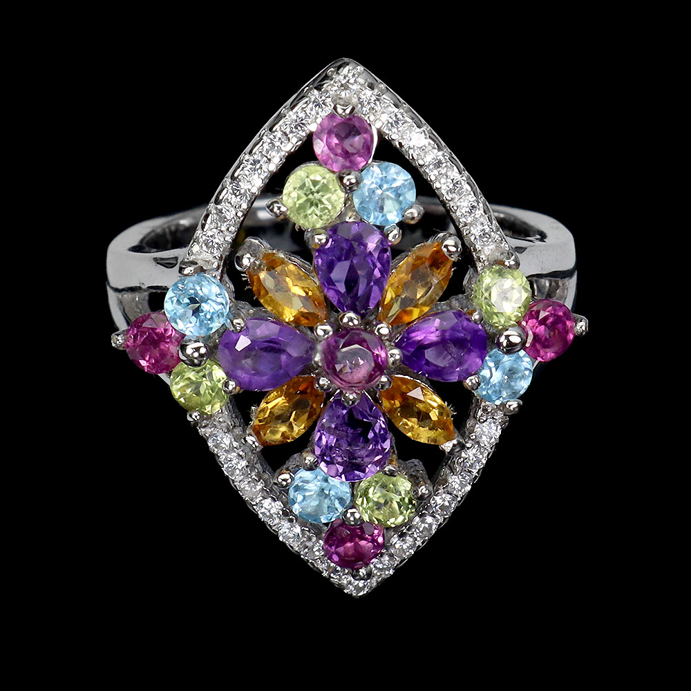Citrine, Simulated Cz, Peridot, Rhodolite Garnet, Sky Blue Topaz