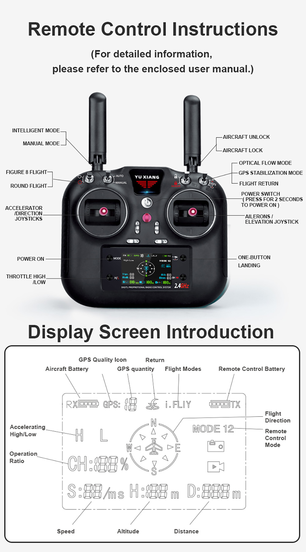 8. 9CH 2.4G Remote Control: 9-channel high-precision remote control with 2.4GHz bidirectional communication protocol,Equipped with a 1024 level operation feel and high-definition display screen.