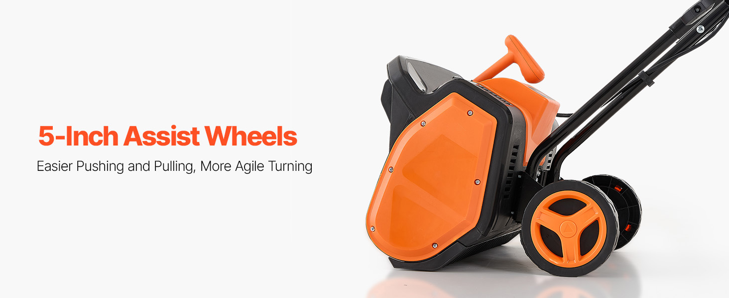 This walk-behind snow blower is equipped with integrated support wheels, simplifying movement and turning for improved efficiency and ease of use.